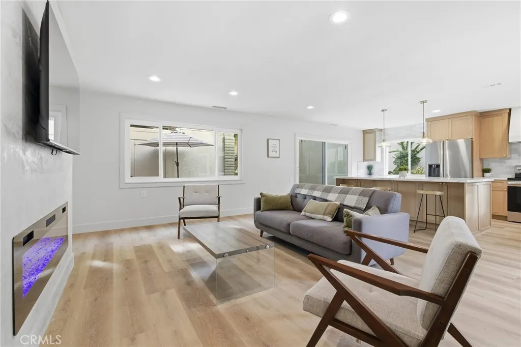 GORGEOUS REMODELED CORDOBA END UNIT in the fabulous 55+ Community of Laguna Woods!! No steps, no one above or below. If you are seeking a retirement community that offers an active lifestyle, 24-7 Gated Community, near world class beaches, top medical facilities, and high-end shopping areas like the Irvine Spectrum, you have found it. One of the most sought after and popular models inside the village, this high-end remodeled Cordoba Unit offers an open concept floorplan, and a large walled in courtyard Patio with 12x24 porcelain tiles, a storage closet, and privacy. Facing a lush greenbelt laden with mature trees and sidewalks, this end-unit Cordoba has a very private feel to it with your front door just inside the gates to your front patio. Inside this gorgeous, remodeled home you'll find recessed lighting, luxury vinyl plank flooring, new double pane windows throughout, washer/dryer hookups, Custom TV mantle for cable tv hookups with 60-inch electrical fireplace below. Additional skylights inside each bathroom providing ample natural light. The kitchen has been re-configured and completely remodeled to feature a custom island fitted with white oak cabinets, brushed gold plumbing and light fixtures, handcrafted tile, and a built-in microwave. All brand-new appliances including Fridge, dishwasher, hot water heater, garbage disposal, with an extra window for additional light. Plenty of open parking spots in front of unit in addition to the nearby assigned carport with additional storage. Laguna Woods Village is a Golfers Haven featuring 27-holes of championship golf which in