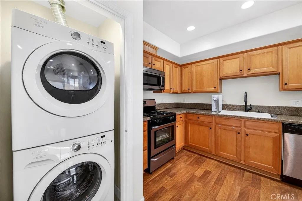 Very Motivated Seller!! Reduced Listing Price!!! Well Maintained Condo For Sale! Grand Park Condominium 2Bed/1Bath On The Top Floor With Only 1 Common Wall Below. Spacious Rooms With Carpet Floor. Primary Bedroom Has Its Own Closet. Second Room Can Be Bedroom, Office or Hobby Room Without Closet. Spacious Living Area With Sliding Door. Granite Counter Tops In Kitchen With Island. Stackable Washer & Dryer Room At The Kitchen Area. 2 Car Assigned Tandem Parking Spaces(P9 & P10). Community EV Charging Stations Available. HOA $441.15/Month Included Water & Trash. Conveniently Location Between Korea Town & Down Town. Easy to Access Freeways. *On Property Profile : 1bed/1bath/760sf Buyer & Buyers Agent Verify & Satisfy