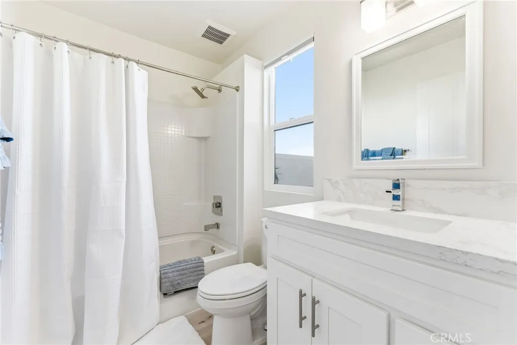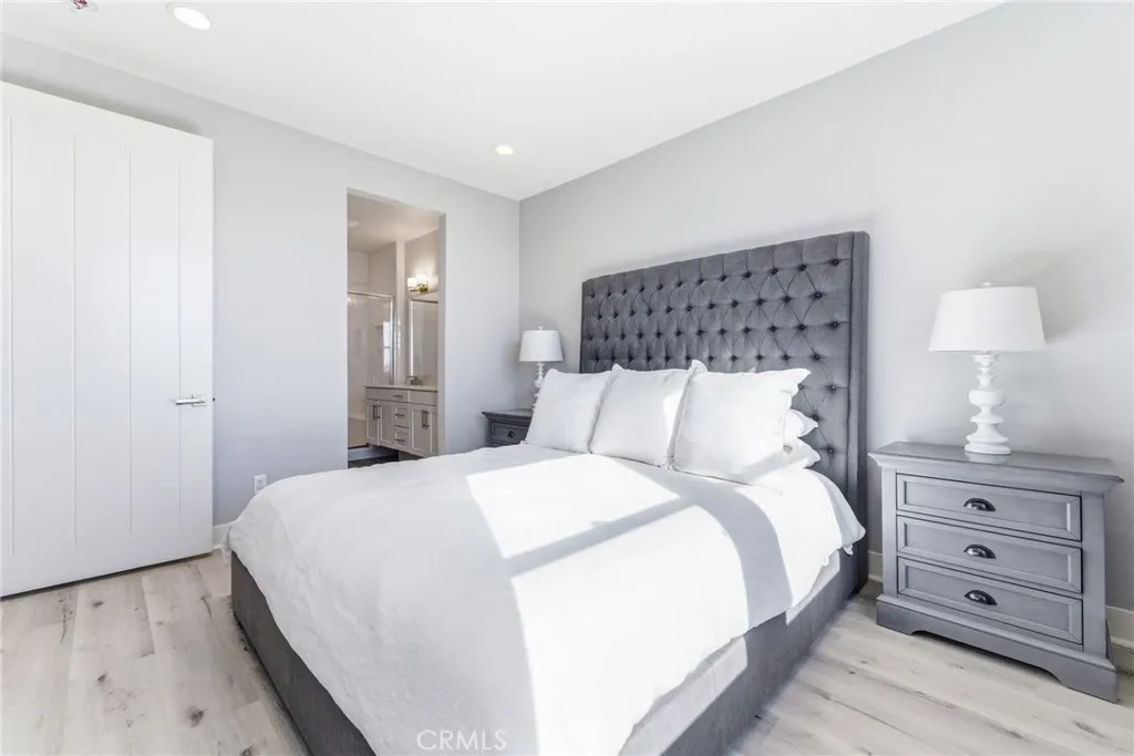 Newport Beach Schools. Four En Suite Bedrooms. One Of The Coast's Best Kept Secrets. 1650 Topanga occupies a rare position inside 17 West, one of coastal Orange County's most sought-after modern communities, and one of only a handful of units in the entire development to offer a true four-bedroom, four-and-a-half-bath configuration. Every bedroom has its own full private bath. In a community where most floor plans top out at three bedrooms with shared bathrooms, that distinction is not a minor upgrade. It changes how the home lives entirely. The layout is the result of a thoughtful remodel, and the execution shows. The entry level opens to a private bedroom and en suite bath, separate from the main living areas, equally suited as a guest room, office, or dedicated workspace. The main living floor opens dramatically: double-height ceilings in the dining area, oversized windows flooding the space with natural light, and an open-concept flow that connects kitchen, dining, and living without interruption. The kitchen is built for real use- quartz countertops, stainless appliances, a generous island, and a walk-in pantry with storage that actually delivers. Custom window treatments, designer lighting, and upgraded vinyl flooring maintain a consistent warmth and quality across every level. The third floor holds the primary suite dual vanities in the bathroom as well as a step-in shower, and generous closet space, along with a second en suite guest bedroom. The fourth floor is where this home earns its own category: a fourth en suite bedroom and full bathroom, a versatile bonus sp