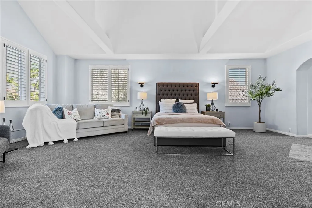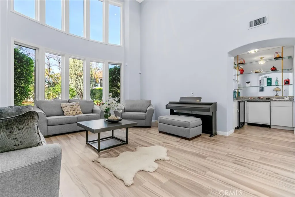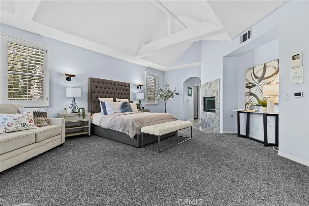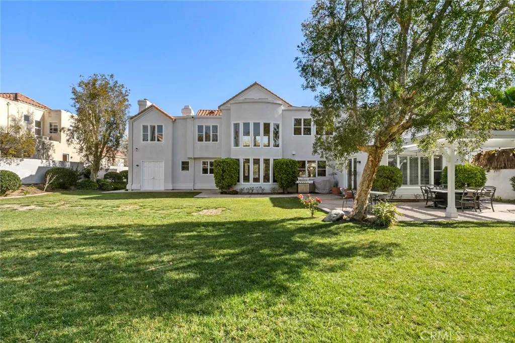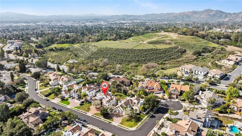 Stunning, contemporary estate located in a prestigious Chatsworth neighborhood. This home showcases 5 bedrooms and 5.5 bathrooms with over 5,400 sq ft of living space on a 17,499 sq ft flat lot. Featuring architectural details throughout, soaring two story ceilings, recessed lighting, high end tile flooring, impressive step-down living room with two story ceilings and windows overlooking the ample back yard. Plenty of natural light throughout. The remodeled kitchen boasts top of the line Viking appliances, a center island with bar seating and a spacious eating area that connects to the bright and airy family room, which features high ceilings and large windows with plantation shutters. A large office, powder room, bedroom, bathroom and dedicated laundry room complete the downstairs. Access the upstairs via two separate stairways at opposite sides for maximum convenience. The master bedroom showcases vaulted ceilings, and a separate seating area/office. A two-sided fireplace separates the bedroom and the large, spa-like bathroom that features a soaking tub, a glass enclosed shower, double sink vanity and two walk in closets. In addition, there are three other bedrooms each one with its own ensuite bathroom. Outside you will find a large patio with a pergola covered seating area, mature trees and plants and plenty of space to use as you desire. Limited access makes this a quiet neighborhood. Close to trails, bike paths, supermarkets, restaurants, coffee shops and all the conveniences that the Vineyards have to offer. Newly installed solar panels are paid off.