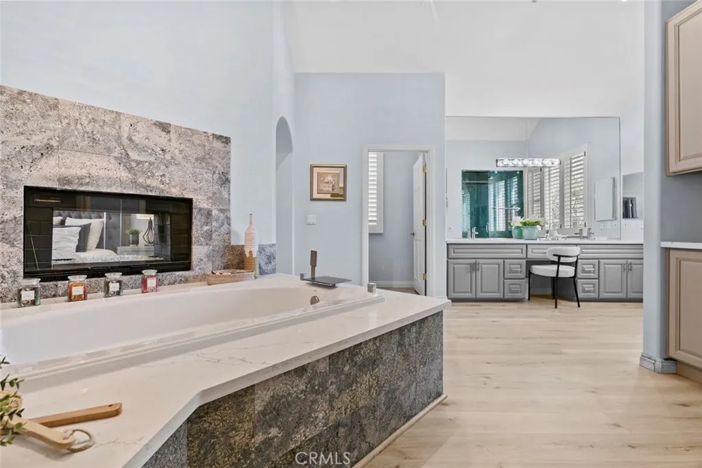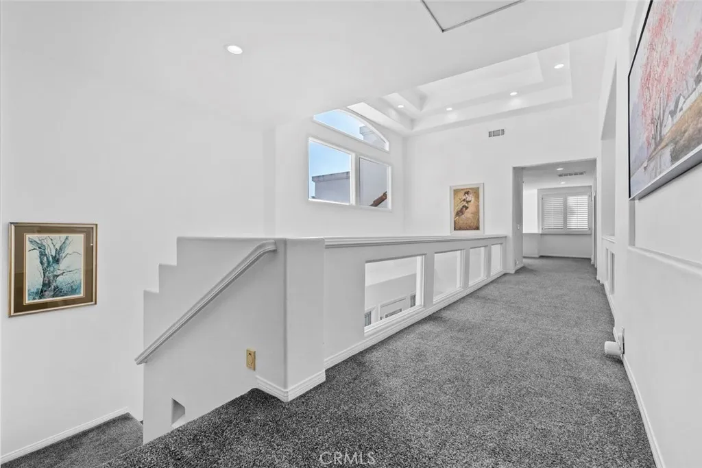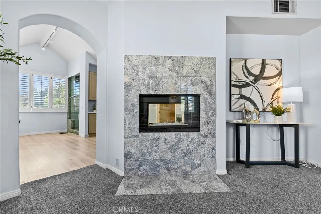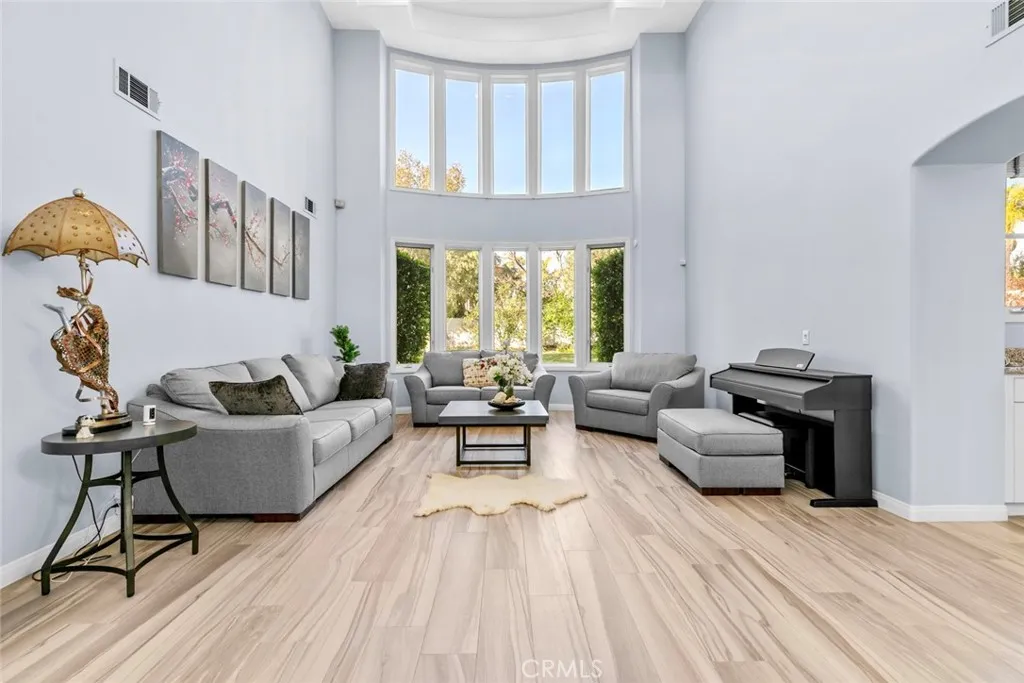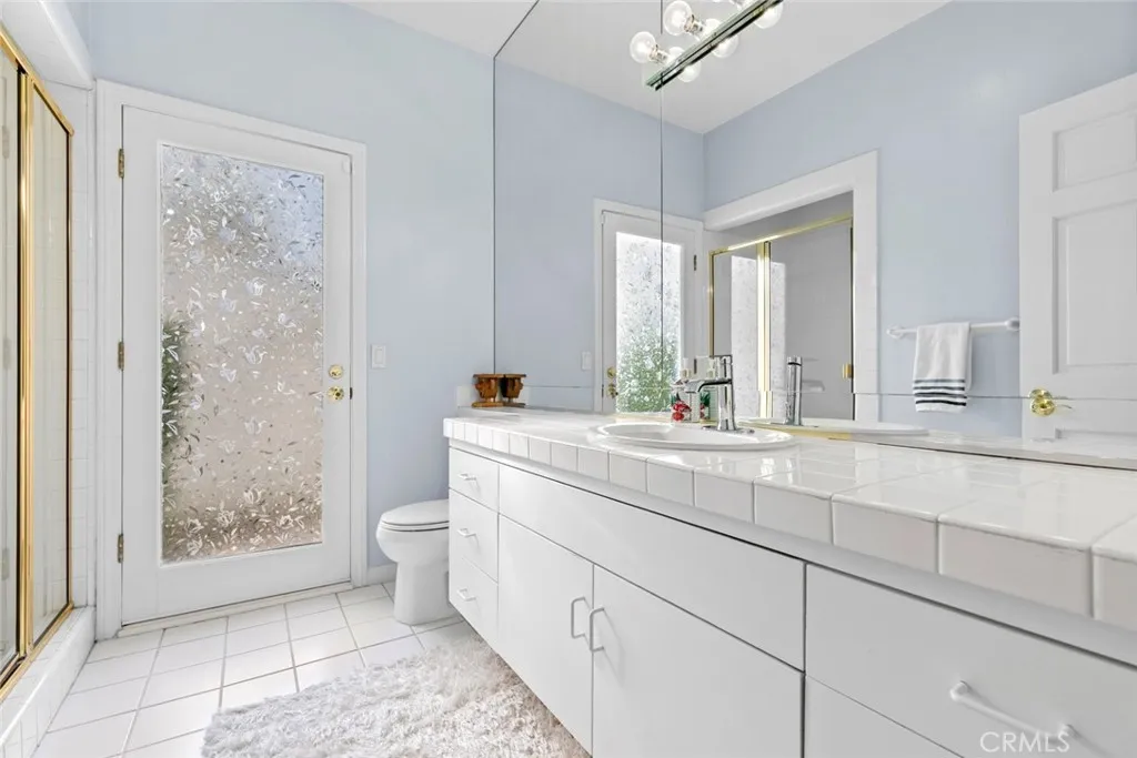 Stunning, contemporary estate located in a prestigious Chatsworth neighborhood. This home showcases 5 bedrooms and 5.5 bathrooms with over 5,400 sq ft of living space on a 17,499 sq ft flat lot. Featuring architectural details throughout, soaring two story ceilings, recessed lighting, high end tile flooring, impressive step-down living room with two story ceilings and windows overlooking the ample back yard. Plenty of natural light throughout. The remodeled kitchen boasts top of the line Viking appliances, a center island with bar seating and a spacious eating area that connects to the bright and airy family room, which features high ceilings and large windows with plantation shutters. A large office, powder room, bedroom, bathroom and dedicated laundry room complete the downstairs. Access the upstairs via two separate stairways at opposite sides for maximum convenience. The master bedroom showcases vaulted ceilings, and a separate seating area/office. A two-sided fireplace separates the bedroom and the large, spa-like bathroom that features a soaking tub, a glass enclosed shower, double sink vanity and two walk in closets. In addition, there are three other bedrooms each one with its own ensuite bathroom. Outside you will find a large patio with a pergola covered seating area, mature trees and plants and plenty of space to use as you desire. Limited access makes this a quiet neighborhood. Close to trails, bike paths, supermarkets, restaurants, coffee shops and all the conveniences that the Vineyards have to offer. Newly installed solar panels are paid off.