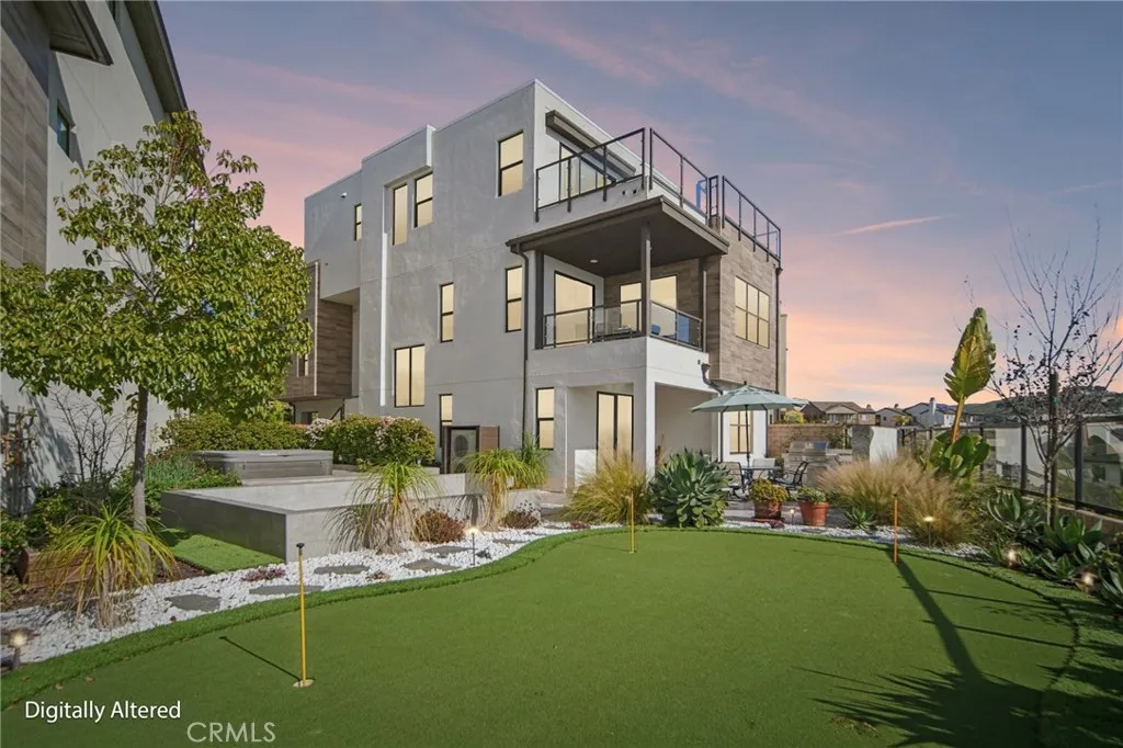 Experience elevated coastal living in this nearly new modern residence, ideally situated on a single-loaded, tree-lined cul-de-sac street within the exclusive Harbor View enclave of the gated Pacifica San Juan community. Built in 2020 and barely lived in, this Toll Brothers masterpiece is set on one of Harbor Views premier and second-largest lots, enhanced by a $450,000 lot premium, and showcases breathtaking 180+ degree panoramic views of the ocean, white water, Dana Point Harbor, mountains, sunsets, and city lights. Offering nearly 3,100 square feet of refined living space, the home features 4 bedrooms and 4.5 baths. Thoughtfully designed for seamless indoor/outdoor living, the home balances modern comfort with timeless coastal elegance. Over $200,000 in custom landscaping and stonework has created a true resort-style backyard, complete with a built-in BBQ station, fountain wall, fire pit gathering area, golf putting green, and a private outdoor spa positioned on a raised tile deck with a warm, wood-inspired finishideal for entertaining or relaxing in a private, resort-style setting designed for comfort and ambiance. The gourmet kitchen anchors the main living space and features white quartz countertops, white cabinetry with custom hardware, a large island with seating, walk-in pantry, and premium KitchenAid appliances. The kitchen opens effortlessly to the living room, formal dining area, and outdoor deck, creating a light-filled space equally suited for everyday living and memorable gatherings. This residence offers two primary suites, including a spectacular top-level