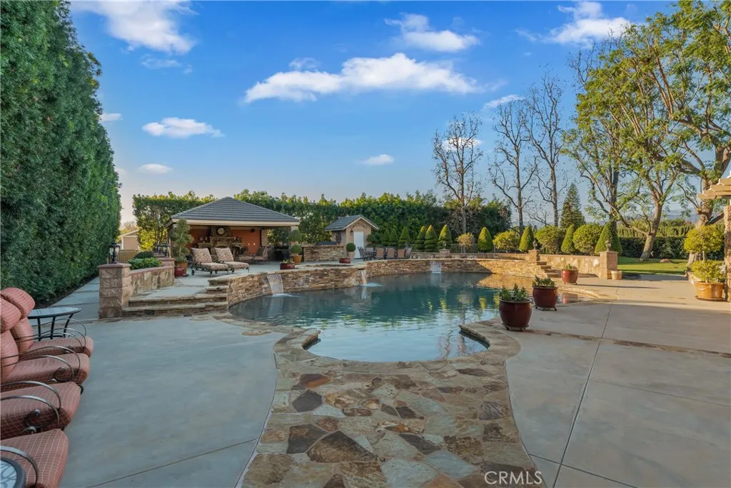 Welcome to the home where entertainers come to be entertained!! Spanning over 3,700 square feet, this exceptional single-story home offers a rare combination of space, functionality, and outdoor living on more than 1.1 acres in the city of Ontario. Thoughtfully designed with an open and highly desirable layout, the home features four generously sized bedrooms, three full bathrooms, and expansive living and entertaining areas that flow effortlessly throughout. The interior is well maintained and remarkably spacious, with oversized bedrooms and bathrooms a massive kitchen and an even bigger family room with sunken in bar/beverage area that provides comfort and flexibility for a variety of living needs. The floor plan truly shines, offering a seamless blend of everyday living and entertaining potential. The backyard is a standout retreat, complete with a large pool and spa, a convenient additional bathroom for pool use, a built in barbecue, outdoor living room complete with TV hook ups and a gorgeous fireplace, ideal for hosting gatherings or enjoying private relaxation. A massive area located off the back of the property behind the outdoor living space is perfect for storage needs, RV parking, boat storage...the sky's the limit. A three car garage adds practicality and additional ample storage. This property presents an incredible opportunity to enjoy a clean, well-kept home with a phenomenal layout and resort style outdoor amenities, while also offering the chance to add personal touches over time. A rare single-story estate with space, privacy, and endless potential. This i