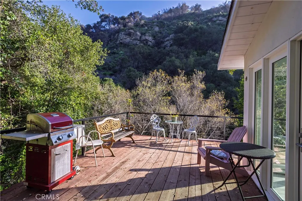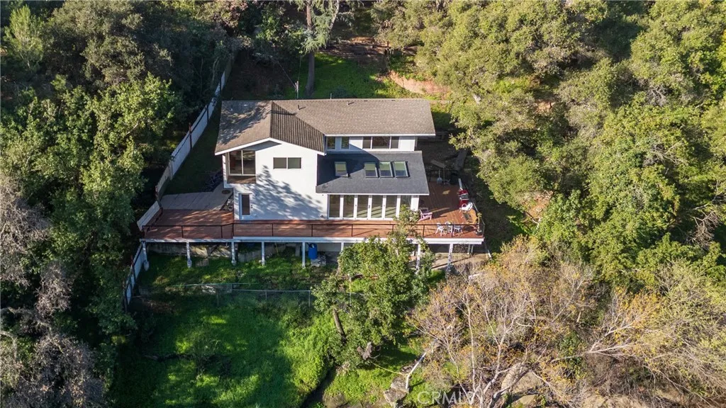Privately set on approximately 2.45 acres across three parcels, this Topanga retreat offers exceptional seclusion while being just over 4 miles from Topanga Beach and moments from local shops, dining, and canyon amenities. Surrounded by mature oaks and natural landscape, the property enjoys peaceful canyon views and a flowing creek in the backyard, creating a truly tranquil setting. The home features light-filled interiors, an open living layout, vaulted ceilings with skylights, and flexible living spaces designed to connect with the outdoors. The property is currently configured with additional bedrooms and bathrooms without permits; buyer to independently verify square footage, room count, and all improvements. Outdoor highlights include a fully fenced yard and a strong sense of privacy. Additional features include a two-car garage and over 100 feet of street frontage offering ample parking. A rare opportunity to own a private canyon retreat with convenient access to both the coast and the Valley.