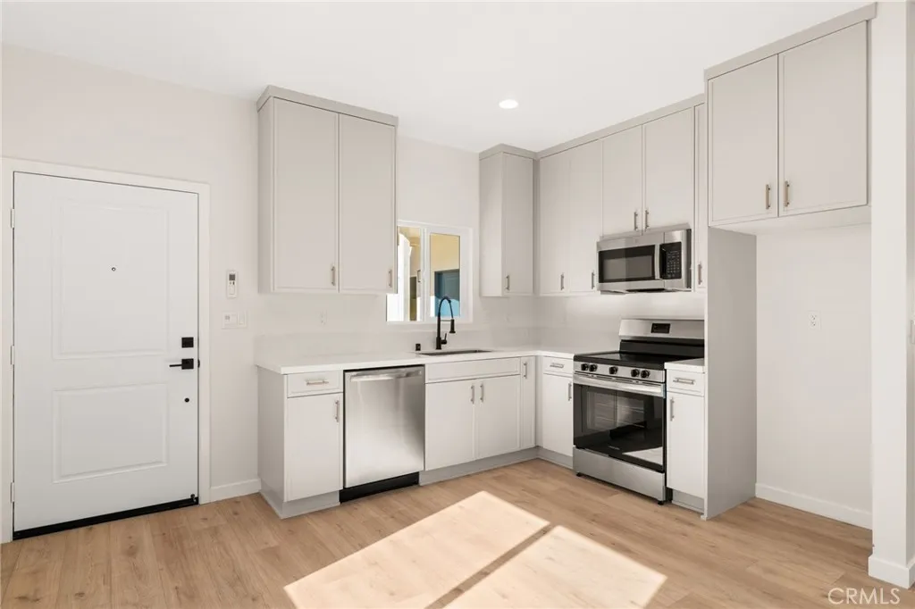 Wow, look at this beautiful and completely remodeled 3 bed 2 bath single-family main home, with TWO brand-new construction Guest House/ADUs, all three with brand new mini-split AC/Heat systems! Welcome to 2151 Euclid Ave, with a fully renovated turnkey 3-bedroom, 2-bath residence offering approximately 1,272 sqft of modern living on a 6,000 sqft lot. The open-concept layout showcases high-end finishes, including a chef-inspired kitchen with slim shaker cabinetry, quartz countertops, stainless steel appliances, and stylish wood-look flooring throughout. The spacious primary suite features a luxurious walk-in shower, while the indoor laundry adds everyday convenience. A shared backyard completes the main home. In addition to the front house, this property offers a brand new construction detached Guest House containing two ADUs; a 1 bed 1 bath (463sqft) and a 2 bed 2 bath (713sqft), for a total of three potential rental units on siteideal for income-producing rental opportunities, first time investors, and multi-generational living. This is a rare opportunity for both owner-occupants and investorslive in the front home while renting out the rear units, or add three desirable rental units to your portfolio. With premium upgrades, efficient layouts, and strong rental demand in the area, this property stands out as a high-performing asset in an attractive location.