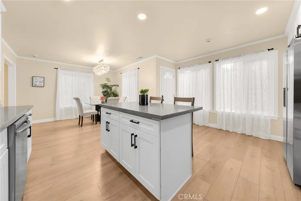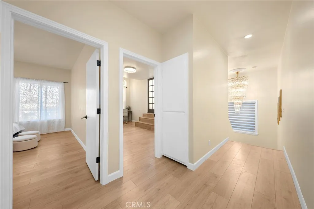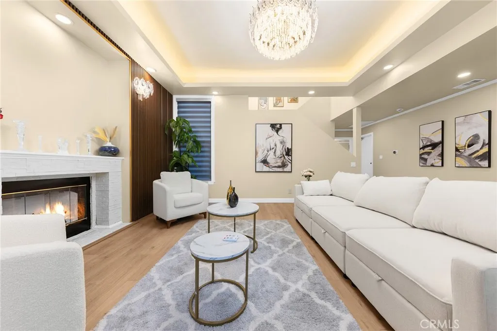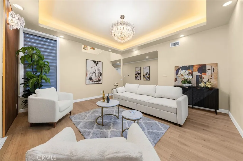 Discover a completely upgraded residence that truly resembles a brand-new home! This exceptional and stunning property is a must-see. It features a brand-new roof, doors, and windows, as well as a state-of-the-art A/C system, a modern kitchen and bathroom, new appliances, and beautifully landscaped front and back yards. The rooftop deck and high ceilings further enhance the space, complemented by a secure fence and solar lighting. Step inside to admire the custom-made, imported crystal chandeliers with adjustable lighting and the living room's unique ceiling design. The office seamlessly connects to the private rooftop deck, ensuring that every room is both spacious and filled with natural light. Enjoy amenities like skylights, smart home appliances and toilets, LED mirrors, and a walk-in closet. The waterfall-style island platform serves as a stunning centerpiece in the kitchen, while the spacious staircase is adorned with large tempered safety glass. Additional features include a double garage with epoxy flooring.Termite completed . Nestled in a safe, quiet neighborhood with friendly neighbors, this home boasts unique architecture and thoughtful design. Welcome to your dream home!