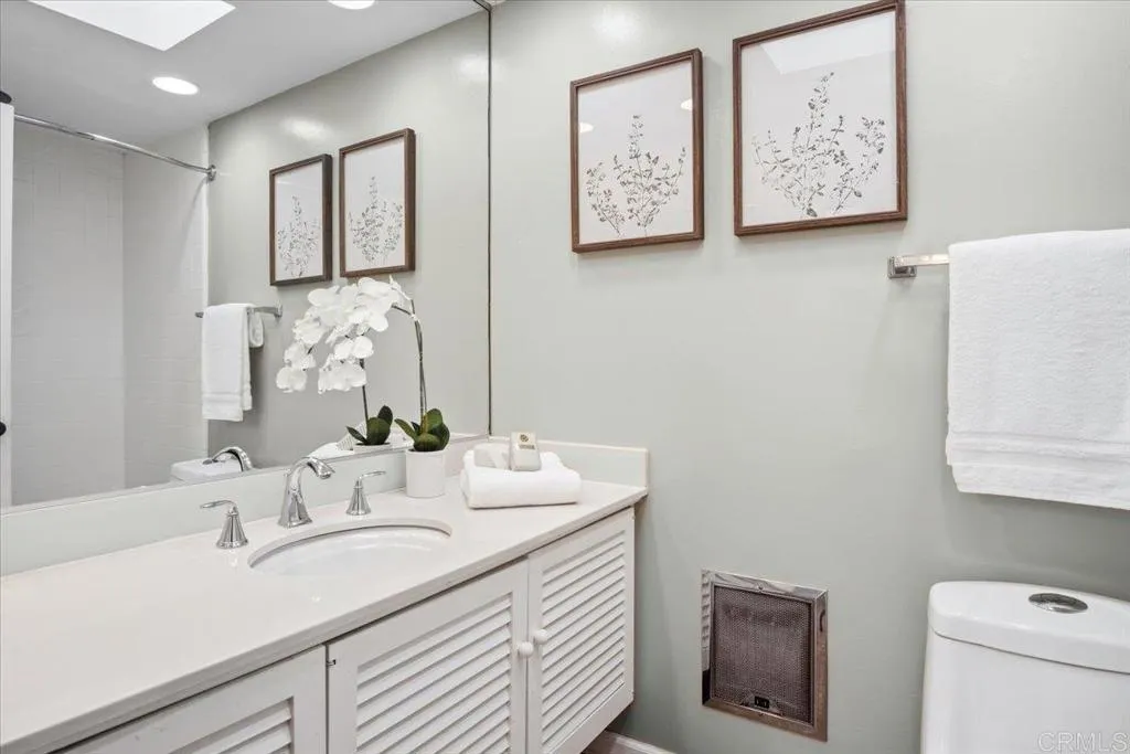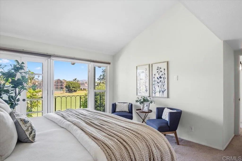 Golf Course Frontage in the highly sought after community of The Villas 1 in Whispering Palms! Situated on the 9 North fairway with panoramic views of the golf course and within close proximity to the fabulous La Valle Coastal Club Resort. 3 bedroom/3 bath (one bedroom and bath on entry level) and a 2 car garage. The kitchen opens onto the dining area, inviting living room with fireplace and offers views from nearly every room! The entry courtyard lends itself to wonderful indoor/outdoor dining or just basking in the sunshine! Just steps to the community pool and park-like greenbelt. Whispering Palms offers a fantastic lifestyle and is conveniently located to all the daily necessities and minutes to the finest beaches around! Don't miss this opportunity!