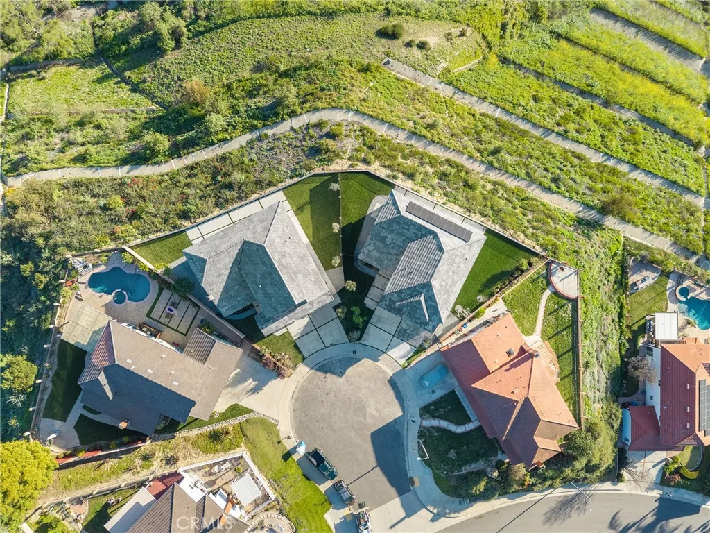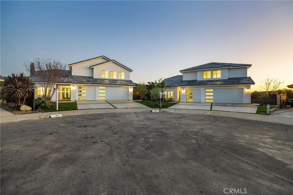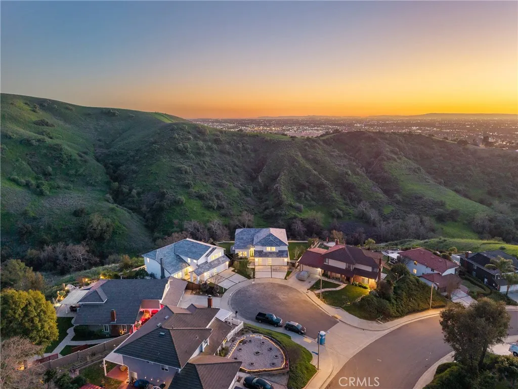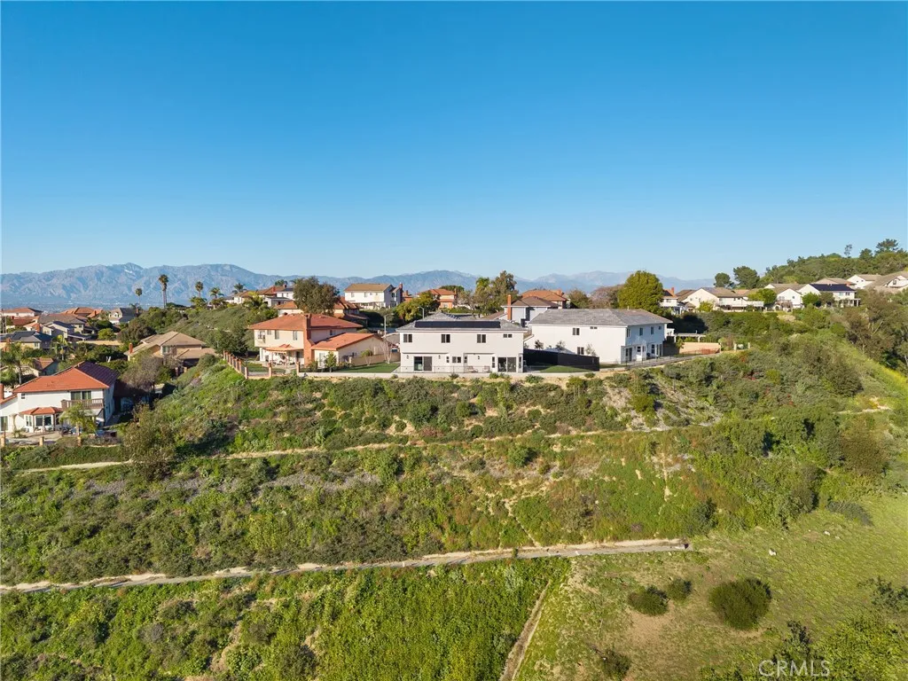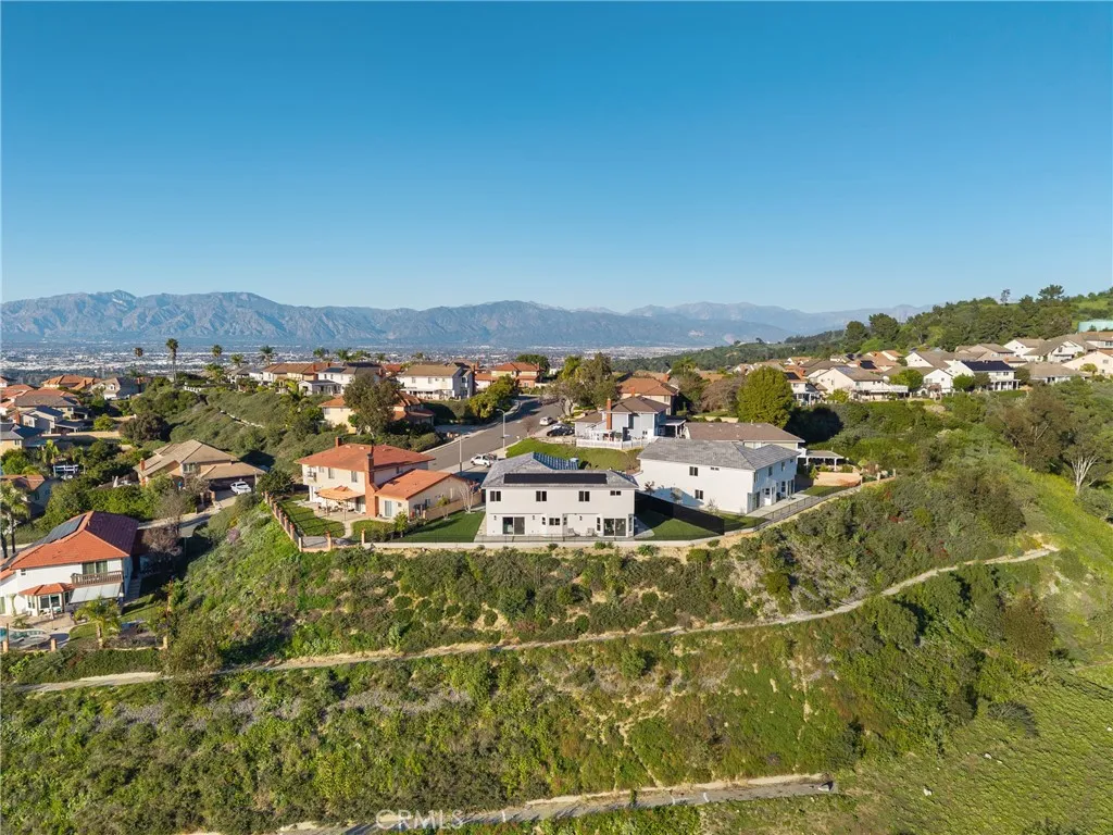 Welcome to 4807 Cinco View Dr, Whittier, a stunning new construction two-story home offering 5 bedrooms and 4 bathrooms, perfectly situated on a quiet cul-de-sac in Whittier Hills. This elevated property delivers privacy, modern design, and panoramic mountain, canyon, and city views. The bright entry opens to a formal living room with a dramatic statement fireplace and abundant natural light. The chefs kitchen features custom cabinetry, quartz countertops, stainless steel appliances, and a large waterfall island, flowing seamlessly into the dining and family roomsideal for everyday living and entertaining. The formal dining room is framed by oversized windows capturing scenic views, while the family room opens to the outdoors and includes a stylish wet bar with custom cabinetry and prep sink. A downstairs bedroom and bathroom with a modern vanity and glass-enclosed walk-in shower adds convenience for guests or multigenerational living. Upstairs, the primary suite offers a spacious retreat with hillside views, a spa-inspired ensuite bathroom with dual vanities, walk-in shower, and a walk-in closet located within the bathroom. A second primary bedroom with its own ensuite provides flexibility for guests or extended family. Additional bedrooms are generously sized. A large upstairs laundry room features quartz counters, custom cabinetry, and a utility sink. The backyard backs to open hillside, offering exceptional privacy, peaceful surroundings, and breathtaking sunsets and city lights. Additional highlights include a convenient custom mudroom, paid-off solar, energy-efficient