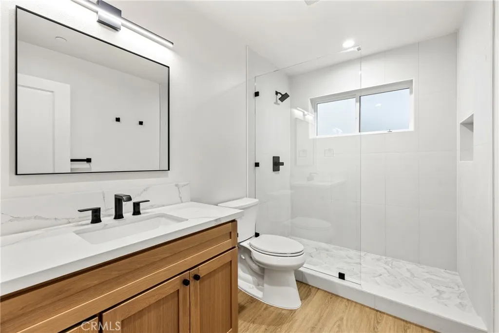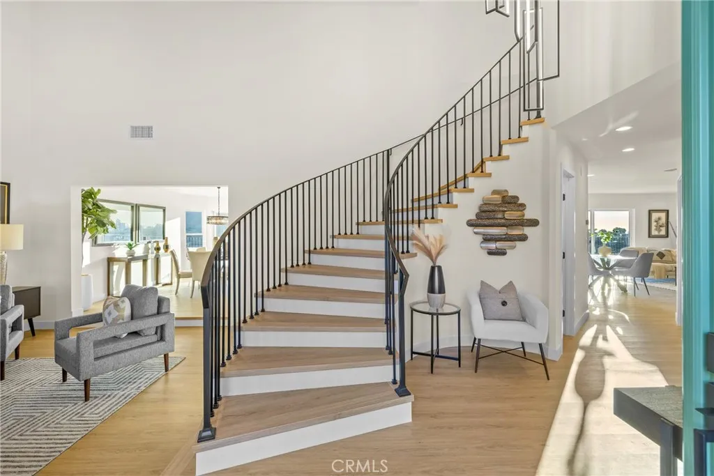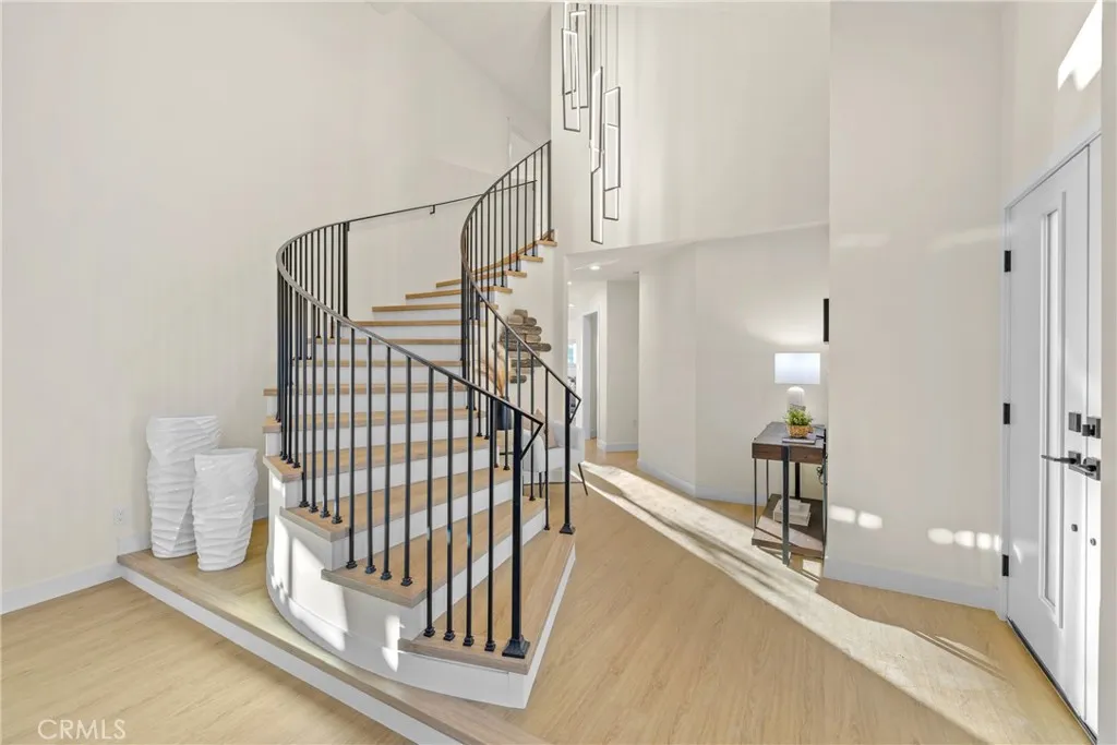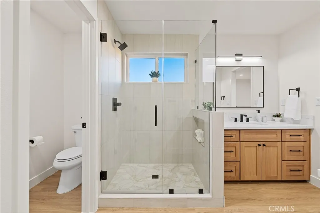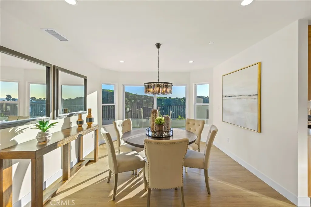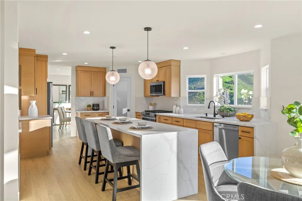 Welcome to 4807 Cinco View Dr, Whittier, a stunning new construction two-story home offering 5 bedrooms and 4 bathrooms, perfectly situated on a quiet cul-de-sac in Whittier Hills. This elevated property delivers privacy, modern design, and panoramic mountain, canyon, and city views. The bright entry opens to a formal living room with a dramatic statement fireplace and abundant natural light. The chefs kitchen features custom cabinetry, quartz countertops, stainless steel appliances, and a large waterfall island, flowing seamlessly into the dining and family roomsideal for everyday living and entertaining. The formal dining room is framed by oversized windows capturing scenic views, while the family room opens to the outdoors and includes a stylish wet bar with custom cabinetry and prep sink. A downstairs bedroom and bathroom with a modern vanity and glass-enclosed walk-in shower adds convenience for guests or multigenerational living. Upstairs, the primary suite offers a spacious retreat with hillside views, a spa-inspired ensuite bathroom with dual vanities, walk-in shower, and a walk-in closet located within the bathroom. A second primary bedroom with its own ensuite provides flexibility for guests or extended family. Additional bedrooms are generously sized. A large upstairs laundry room features quartz counters, custom cabinetry, and a utility sink. The backyard backs to open hillside, offering exceptional privacy, peaceful surroundings, and breathtaking sunsets and city lights. Additional highlights include a convenient custom mudroom, paid-off solar, energy-efficient