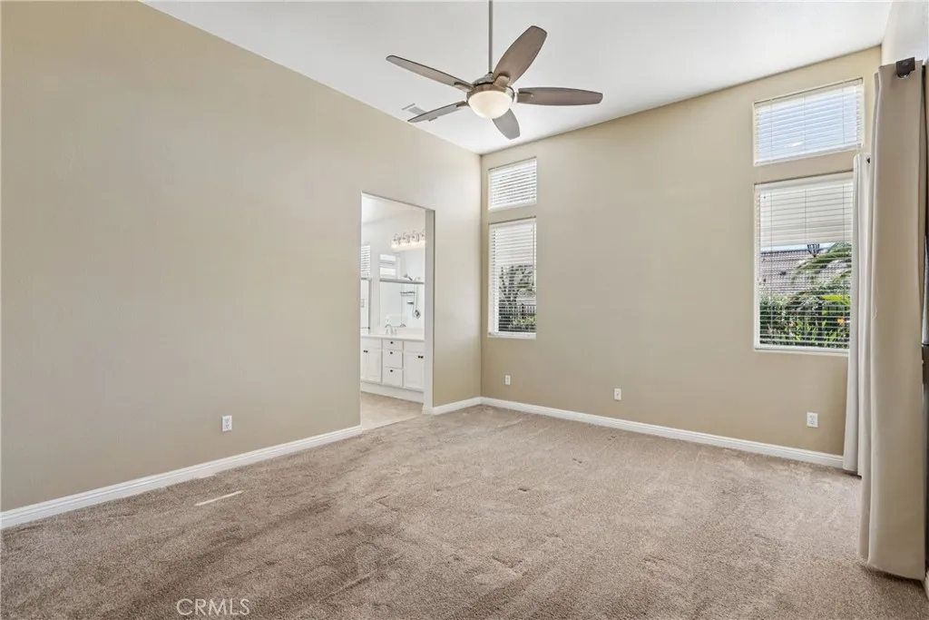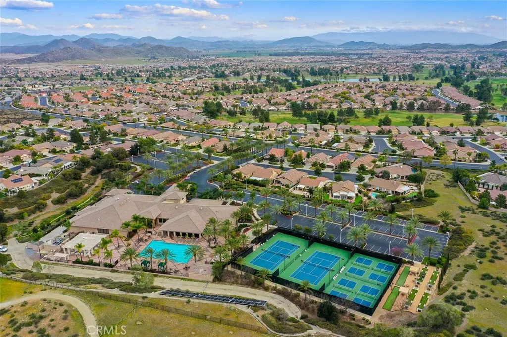 Welcome to The Oasis, a premier gated 55+ community offering resort-style living at its finest. This beautifully maintained 1,780-square-foot home on a corner lot, features 3 full bedrooms and 2 bathrooms with a bright, open floor plan designed for comfort and entertaining. Enter into the formal living and dining rooms which provide an elegant space for gatherings. The spacious great room showcases a cozy fireplace with raised hearth and flows seamlessly into the kitchen and dining areas. Cathedral ceilings in the primary bedroom create a light and airy retreat. A sliding glass door from the primary suite opens directly to the patio, blending indoor and outdoor living. The third bedroom is thoughtfully designed with a full wall of custom wood built-ins and a walk-in closet. Laundry room features a charming barn door. Newer ceiling fans throughout the home. Step outside to a generous private patio featuring Alumawood patio covers, ceiling fans, and privacy sun shades, perfect for relaxing year-round. The fully landscaped backyard includes custom stamped concrete, creating a serene and low-maintenance outdoor oasis. The garage includes custom cabinets and epoxy floors. Additional highlights include a fully paid solar system and HOA-maintained front yard landscaping for easy living. Residents of The Oasis enjoy exceptional amenities, including a pool and spa, clubhouse, fitness center, pickleball and paddle tennis courts, bocce ball court, billiard room, library, card and game rooms, and outdoor cooking areas. With guard gated security, you can enjoy peace of mind while embrac