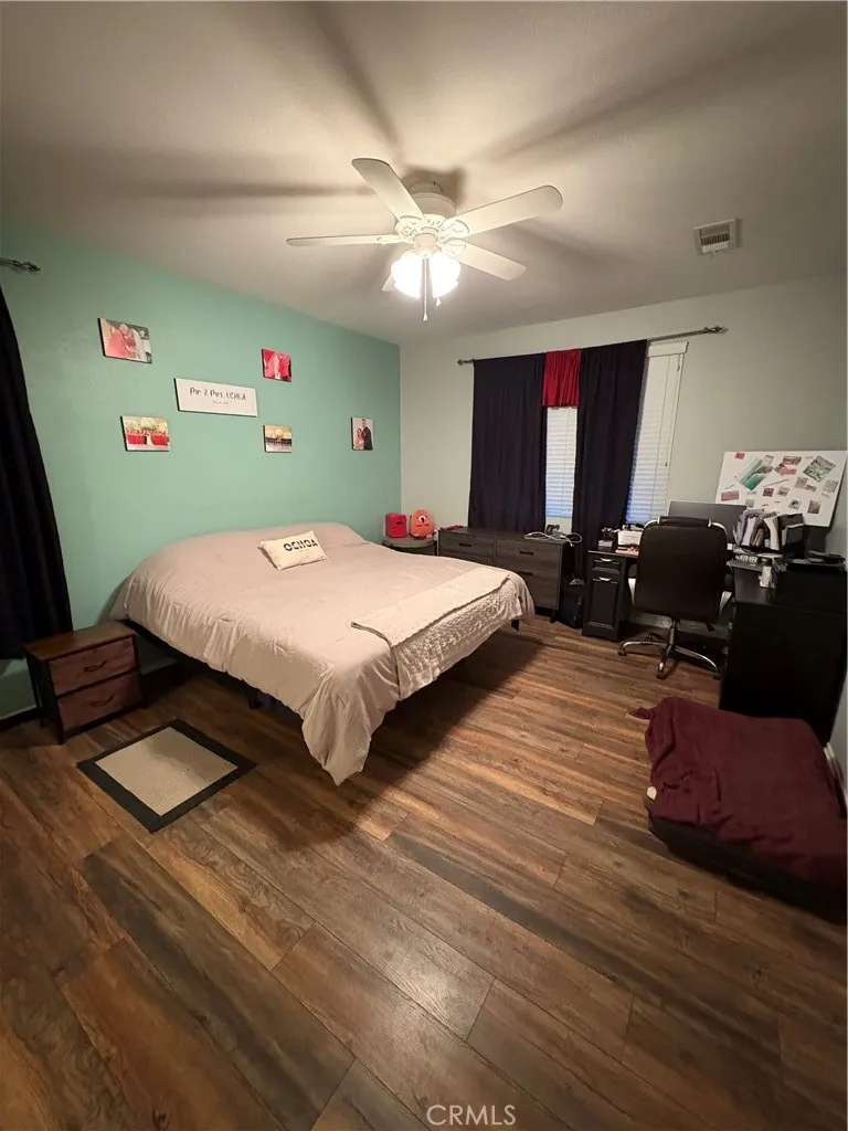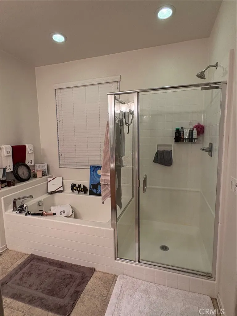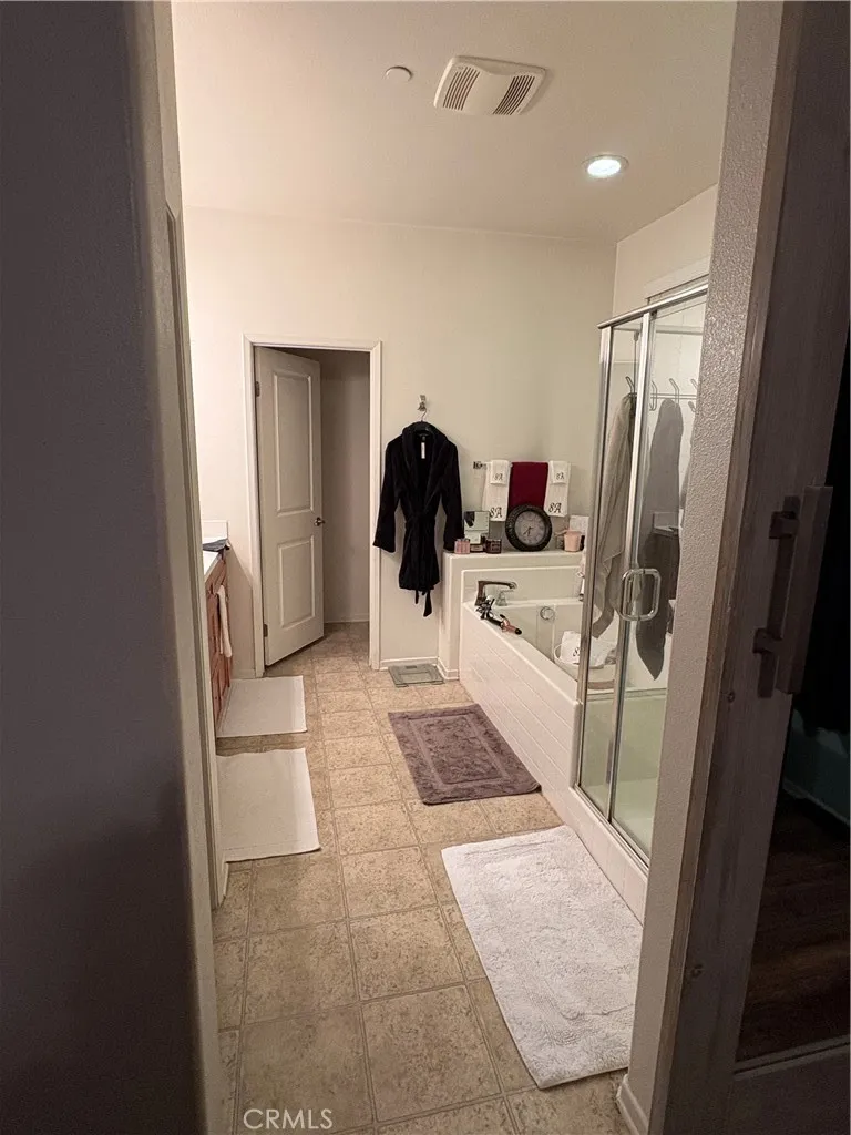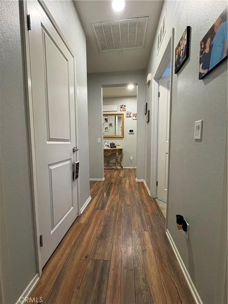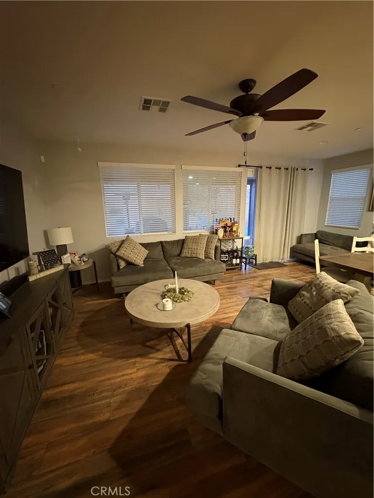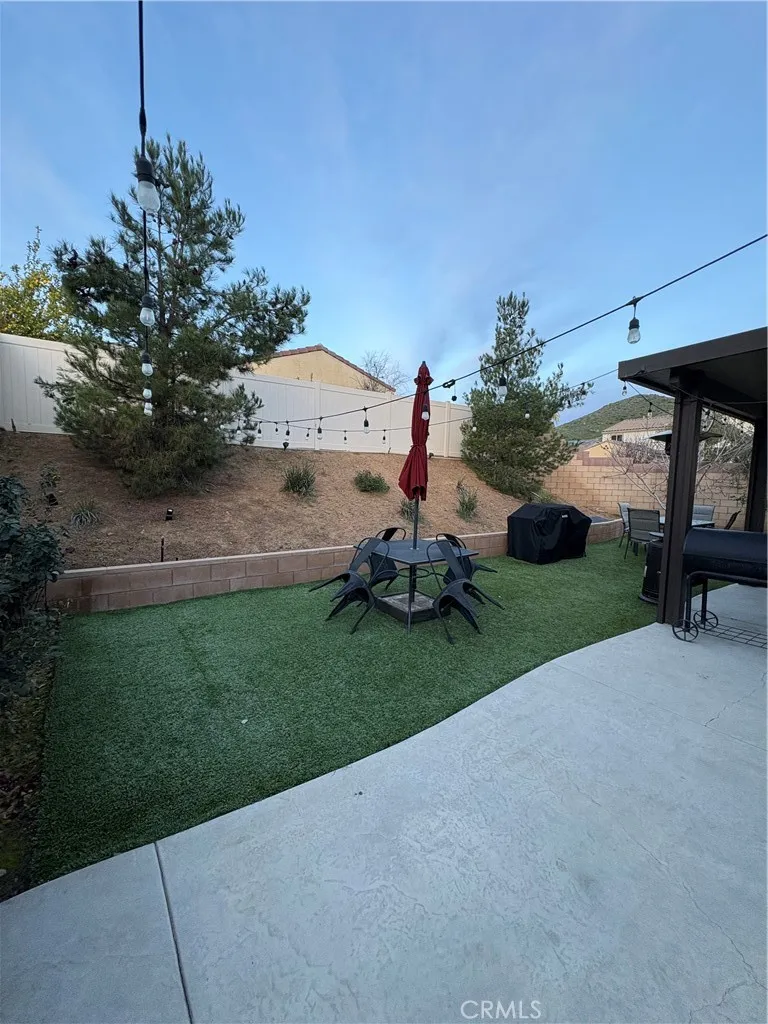 Beautifully maintained 3-bedroom, 2-bath home with a 2-car garage and low-maintenance artificial turf front yard. The interior features upgraded laminate tile flooring throughout, high ceilings, and an open-concept living area ideal for entertaining. The kitchen offers ample cabinetry with brushed nickel hardware, generous storage, a large center island, stainless steel appliances, and granite countertops. All bedrooms are well-sized. The primary bathroom includes dual sinks, a separate soaking tub and shower, and a private toilet room. Additionally, the garage has epoxy flooring, making it absolutely beautiful! The fully landscaped backyard features artificial turf, a covered patio, planters, and a spacious side yardperfect for outdoor enjoyment. Additional upgrades include a water softener and an alkaline drinking water tap. Leased solar panels help reduce summer electricity costs. Conveniently located within walking distance to the elementary school and close to Canyon Hills community amenities, including parks, pools, spas, splash pad, hiking trails, sports courts, picnic areas, and more. Come see it BRING YOUR BUYERS!!