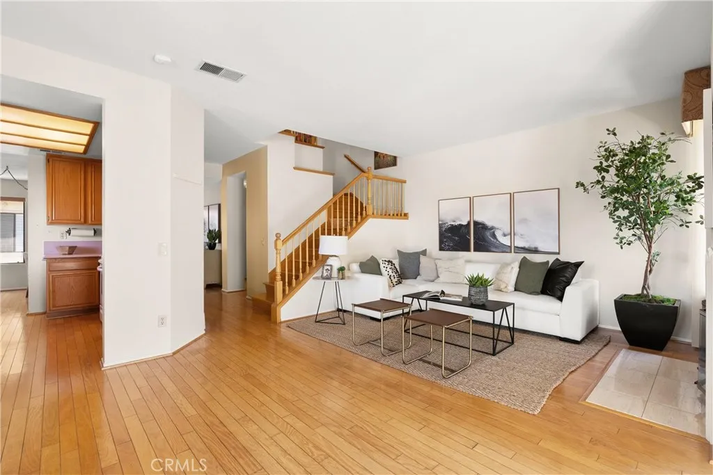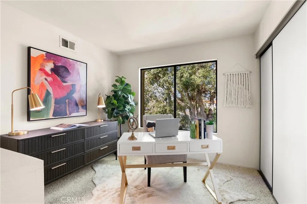 Tri-level end-unit townhome offers privacy, abundant natural light, and a versatile floor plan with 3 bedroomsthe third bedroom opened by the builder for an office/den (wall and door can be added to fully enclose) There are 2.5 baths. The romantic stairway is perfect for a Bride to descend for a perfect wedding! LOWEST PRICE PER SQUARE FOOTAGE IN THE COMPLEX!!! The primary suite features a walk-in closet and private bath. Main living level showcases hardwood flooring, vaulted ceilings, a spacious living room with fireplace, and a sliding glass door leading to a private patioideal for indoor-outdoor living. A formal dining room connects seamlessly to the living space and kitchen, creating an ideal layout for entertaining. The kitchen includes wood cabinetry, a pantry, a double sink with a window above, and an open design that flows into both the dining and living areas. The lower level features an attached garage with parking for up to three cars (including a tandem space) and an additional bonus room, perfect for a home office, gym, or storage. Situated within the highly desirable Windemere on the Green community, this gated, resort-style association offers an exceptional lifestyle with an impressive recreation center featuring a lap pool, large swimming pool, oversized spa, and an expansive clubhouse complete with a living room, bar, kitchen, fireplace, pool room and gym. Residents also enjoy access to multiple handball and racquetball courts plus Basket Ball half court all surrounded by beautifully maintained greenbelts. Ideally located in central Torrance, Windemere on t
