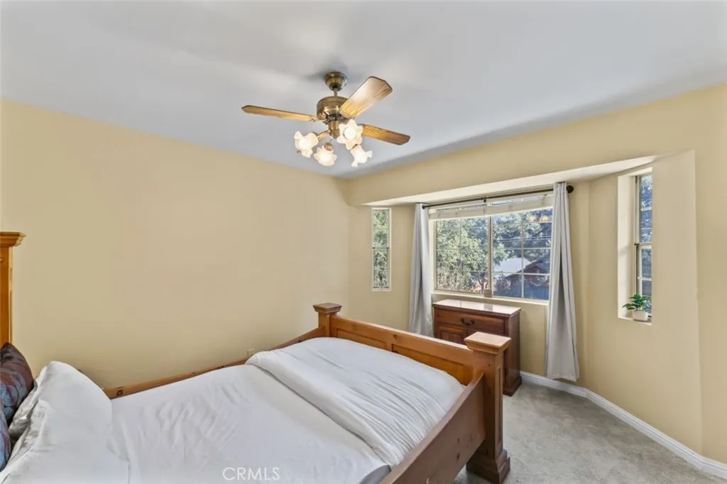 Situated on a corner lot in Pine Mountain Club, this well-maintained home offers a versatile layout with three bedrooms, an office, three bathrooms, and a dedicated spa room. The main living area is located on the upper level, featuring a comfortable and functional design centered around a wood-burning stove with a classic rock hearth. This level includes approximately 1,830 square feet of living space. The lower level adds flexibility with a finished garage, a bonus room ideal for an office or creative use, an additional bathroom, and a spacious laundry room, providing approximately 278 square feet of additional usable space. Outdoor living is a highlight, with a recently stained deck overlooking a landscaped yard with a mix of trees and shrubs. The mostly level lot also includes a usable side yard, offering space to relax and enjoy the mountain setting. The kitchen features laminate flooring, a pantry, and a range installed in 2024. Recent updates include a roof replaced in October 2023 with a 30-year warranty, a water treatment system installed in 2023, garage door openers and a water heater installed in 2026, central air conditioning, and a garden shed for additional storage. With a practical layout, thoughtful updates, and inviting outdoor space, this home offers comfortable mountain living in Pine Mountain Club.