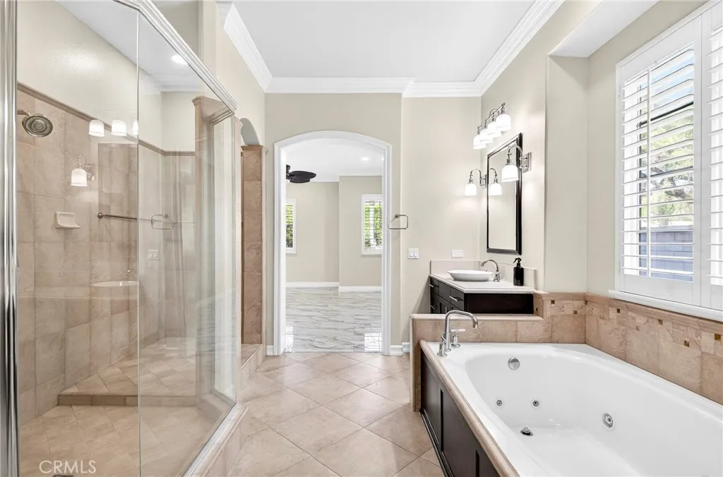 Amazing dream estate with nearly 30,000 Lot size situated within the highly desirable Etiwanda neighborhood! This impressive & immaculate single-story home possesses the perfect blend of modern luxury, sophistication, and ultra-privacy. Fully Remodeled Interior in 2025 with new tile flooring, Gourmet professional Kitchen, Resort-like backyard, Built-in BBQ grill area, custom Pebble-Tec Pool & Spa, (4) car attached Garage, and a fully paid-off 20kW Solar Panel System newly installed in 2025 ~ Wow! Appreciate the gorgeous design and tasteful improvements throughout including thoughtful color schemes, gold-inspired kitchen features an impressive golden stainless-steel sink with matching faucet, cabinet hardware and backsplash. Other notable improvements include: Central AC & Heat, recessed lighting, custom plantation shutters, built-in Office + Furniture, and cute unique ceiling fans. The Master bathroom features an oversized shower stall with travertine tiles, soaking tub with jets, dual sinks, & custom walk-in closet shelving to showcase your wardrobe and efficiently keep your valuables organized. Step outside the rear yard and fall-in-love with the custom landscaping, resort-like tranquil beauty with amazing mountain views and massive covered patio featuring pre-wired sound speakers and lighting, and built-in wet bar equipped with sink and separate BBQ grill area. This dream estate will surely impress and perfect for both intimite family gatherings as well as entertaining guests or large parties. Excellent location north of 210 Fwy and homes in this community rarely hit the
