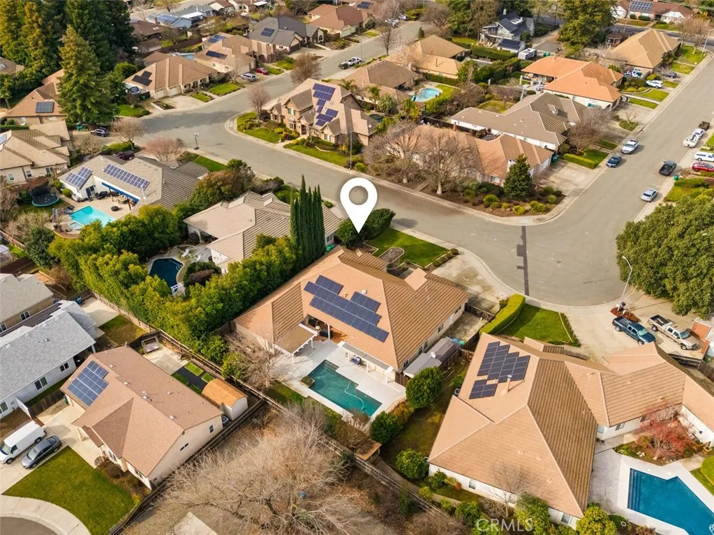 This well-built North Chico home offers thoughtful design, quality finishes, and spaces that truly work for everyday living and entertaining. Inside, youll find new LVP flooring throughout, architectural archways, exposed beam ceilings, and a spacious living room with a cozy fireplace. The kitchen is both functional and stylish, featuring granite countertops, custom wood cabinetry, a Wolf gas cooktop, Sub-Zero refrigerator, large center island, walk-in pantry, and breakfast bar. A formal dining room sits nearby, along with an additional formal living space that adds flexibility for hosting or gathering. A dedicated office with built-in shelving provides a comfortable work-from-home setup. The primary suite offers a private retreat with backyard access, walk-in closets, dual vanities, and a tiled walk-in shower. Three additional bedrooms are generously sized, and the home also includes ceiling fans throughout, an indoor laundry room, and an attached three-car garage. Recent upgrades include a newer furnace, air conditioning system, and water heater, adding peace of mind and efficiency. Out back, the property is designed for year-round enjoyment with a covered patio, Pebble Tec pool, outdoor kitchen and bar, plus a storage shed and garden area. Located in a desirable North Chico neighborhood, this home combines comfort, function, and standout amenities in one complete package.