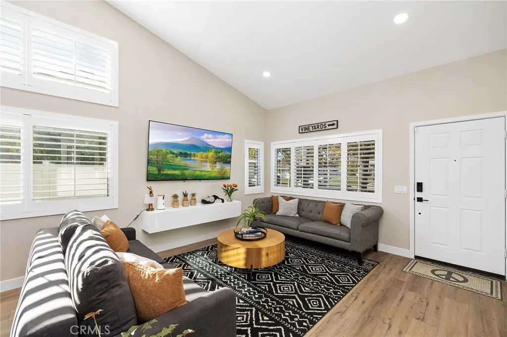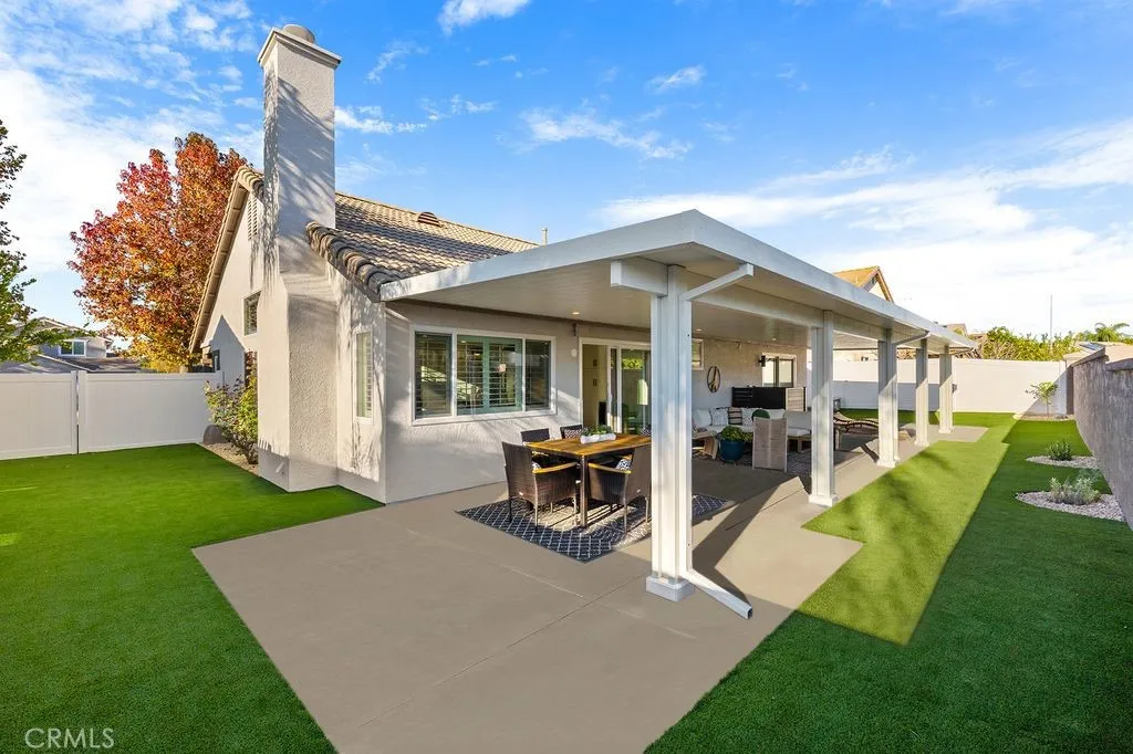 Effortless modern luxury defines from this Stunning Single Level Home, perfectly positioned on a quiet cul-de-sac in one of Temeculas most coveted neighborhoods, Paloma del Sol. This home has been freshly updated from top to bottom, no corner left untouched, with high-end upgrades throughout, providing a seamless blend of sophisticated style with everyday comfort. Step into an expansive open-concept living space, where the gourmet kitchen steals the show and makes hosting a breeze. Featuring white quartz countertops, custom-built two-tone cabinetry, elegant gold accents, statement lighting, bar with a beverage fridge, and all new stainless steel appliances. With a seamless flow into the dining and living spaces, fall in love with every thoughtful detail. Light pours in through all new windows throughout the home. The primary en-suite is designed to be a retreat, with backyard access and a spa-inspired ambiance, featuring gold accents, custom tile, a frameless glass shower, and a fully designed walk-in closet. This home also includes a flex fourth bedroom, currently used as a home office/gym. The unique accent wall makes a bold statement upon entering the home. Enjoy the convenience of a maintenance-free backyard oasis, with new artificial turf and automated drip lines, surrounding a full length solid patio cover. With only the back of the middle school as a rear neighbor, peaceful weekends, evenings and holidays are yours, with occasional sounds of life during daytime hours. A generously sized POTENTIAL RV/BOAT PARKING area along with the finished 3-car garage is a rare com