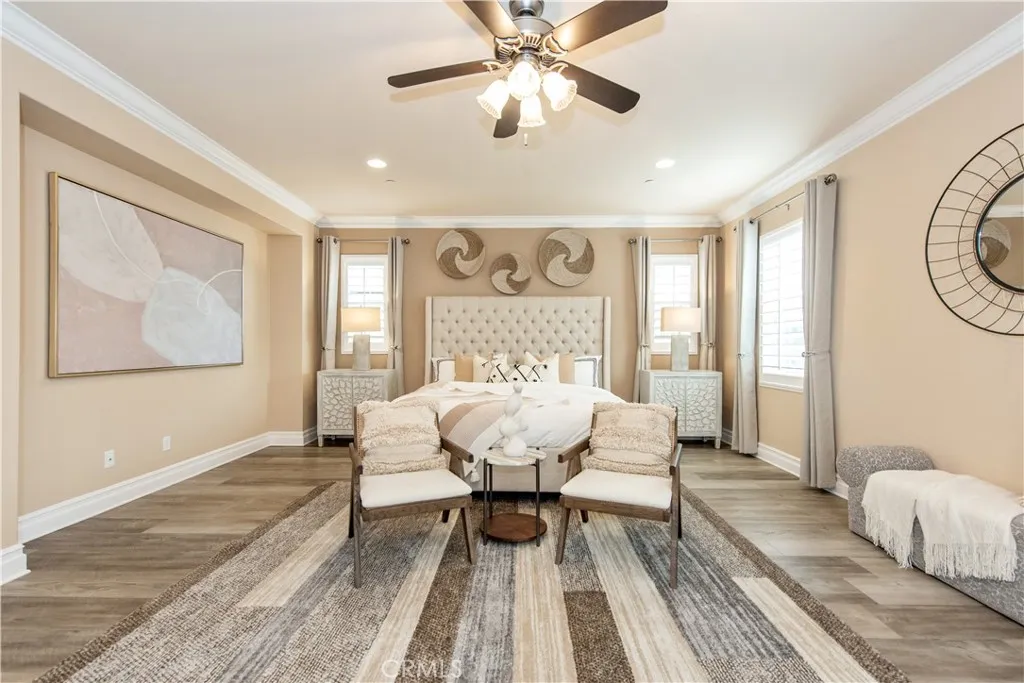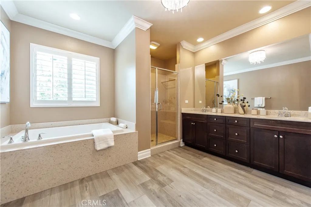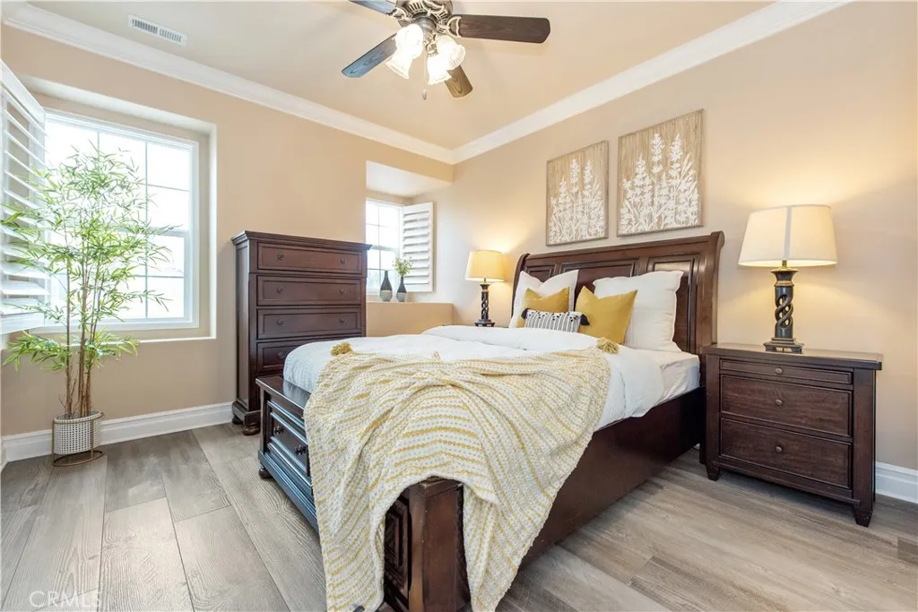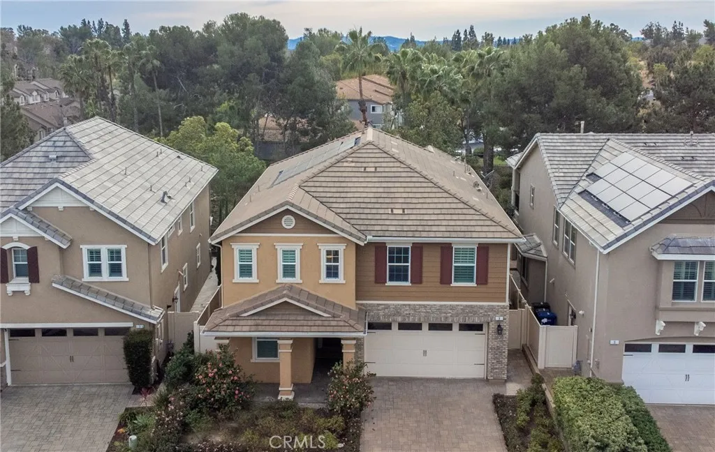 All bedrooms have mountain view or tree view. Welcome to this beautiful Whistler Ridge estate home, ideally situated on a quiet cul-de-sac in the heart of Lake Forest. Surrounded by natural beauty and just minutes from Whiting Ranch Wilderness Park, scenic hiking and biking trails, and a nearby sports park, this home offers the perfect balance of peaceful surroundings and everyday convenience. This spacious residence offers approximately 3,331 square feet of well-designed living space, featuring 5 bedrooms and 4 full bathrooms, including a highly desirable main-floor bedroom and full bath, ideal for guests or multi-generational living. The home has been freshly painted within the last two years, features a two-year-old water softener, and includes a fully paid-off solar system, providing both comfort and long-term energy savings. The interior showcases extensive luxury upgrades throughout, with elegant finishes, custom details, and designer lighting that create a refined yet welcoming atmosphere. The open chefs kitchen features a large center island, upgraded stainless steel appliances, and a walk-in pantry, flowing seamlessly into the family room with a cozy fireplaceperfect for entertaining or everyday living. Upstairs, the expansive primary suite serves as a private retreat, complete with a luxurious bathroom and walk-in closet. A secondary upstairs bedroom includes its own en-suite bathroom, along with two additional bedrooms and a versatile gathering or bonus room. The homes exterior offers excellent curb appeal with a paver driveway and an inviting front porch. The pr