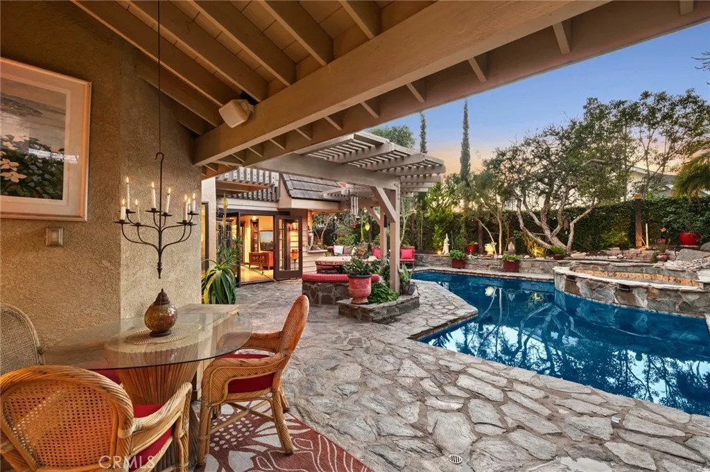 Welcome to 30951 Via Errecarte, where refined luxury, exceptional privacy and the coveted San Juan Capistrano lifestyle come together in a remarkable semi-custom residence on a 10,000 sq ft lot. Expanded beyond the original floor plan, this thoughtfully designed home offers five bedrooms, three bathrooms- all enhanced by custom woodwork that elevates the homes architectural character while maintaining effortless livability. The chef-inspired kitchen features custom cabinetry, new porcelain countertops with matching backsplash, stainless steel appliances and a spacious dine-in barperfect for both daily living and endless entertaining. The massive main-floor bedroom, currently styled as a private office, provides an ideal setting for work-from-home executives or a home-based business. At the heart of the property is a resort-inspired backyard designed for both elevated entertaining and everyday escape. A stunning pool and spa, built-in outdoor dining table with custom benches, and lush landscaping create a true private compound feelserene, secluded, and completely turnkey. Ultimate privacy surrounds the home, making each day feel like a personal retreat. The primary suite serves as a true sanctuary, featuring a custom fireplace with a separate sitting area, a spa-like bath, a walk-in closet, and ample cabinetry space. Step directly out to a 400+ sq ft covered retreat bringing the usable living space to approximately over 4,200 sq ftideal for an outdoor gym, sauna, yoga space, or year-round alfresco dining. This thoughtfully designed extension transforms everyday routines into