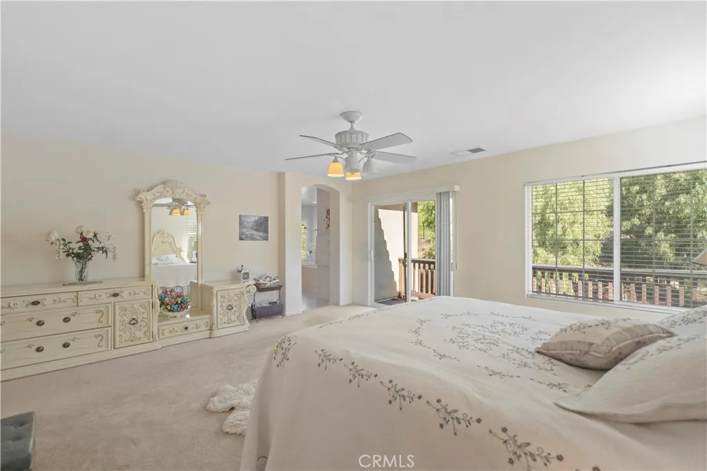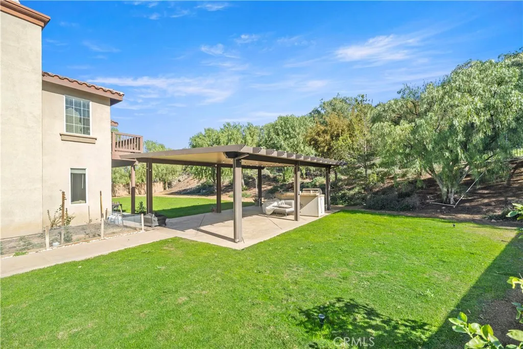 Welcome to this stunning luxury home, nestled in a quiet cul-de-sac in Corona. Built in 2006, this beautiful home offers 3,287 SF of luxury living space on a huge 17,860 SF. The open-concept design is perfect for family living and entertaining. Features include a grand foyer, soaring 2-story high ceiling, and luxury wood shutters throughout. The gourmet kitchen with double islands and built-in appliances is a chefs dream. The main level includes a guest bedroom and full bath, perfect for visitors or multi-generational living. Upstairs, the spacious loft can be used as a second family room or easily converted into a 5th bedroom to meet your needs. The oversized master suite offers a peaceful retreat with a luxurious bath featuring a separate shower and soaking tub, as well as his and her walk-in closets, boasts a private balcony with lush hillside views ideal for a relaxing morning coffee. The backyard oasis is perfect for outdoor entertaining, with a covered patio, built-in BBQ/bar, manicured landscaping, and a garden area for home-grown vegetables. Additional features include a 3-car garage, easy access to freeways, and proximity to shopping, dining, and downtown. Whether you're hosting friends or enjoying a quiet evening at home, this property has it all!Come and make this dream home yours truly a perfect place to call HOME!