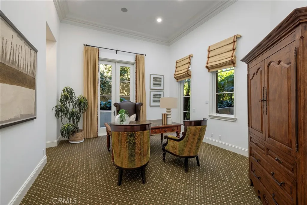 Set within the guarded and patrolled gates of Pelican Crest, this custom Newport Coast estate is a masterclass in craftsmanship, scale, and view-driven design. Encompassing approximately 7,482 square feet, the residence offers 5 bedrooms and 5 1/2 baths, thoughtfully composed to balance grand entertaining with refined everyday living. From the moment of arrival, the home announces itself with extraordinary architectural features and meticulous detailing an expression of quality that carries throughout. Interiors unfold to reveal a richly wood-clad library, a billiards and game room, and a gourmet kitchen appointed with premium appliances, all anchored by both formal and informal dining spaces. A private office, easily convertible to an additional bedroom, adds flexibility, while a grand staircase ascends to the second level, creating a dramatic yet graceful transition between floors. The floor plan is both generous and intuitive. A main-level bedroom suite provides ideal guest or multigenerational accommodations. Upstairs, three secondary bedrooms include one en-suite and a thoughtfully designed Jack-and-Jill join the other two secondary bedrooms, offering both privacy and functionality. Completing the upper level is the primary retreat, a sanctuary that rivals a fine resort elevated and serene, with sweeping ocean vistas stretching to the endless horizon. It is the views, however, that truly define this estate. Commanding extraordinary panoramas of white-water coastline, year-round sunsets, and Catalina Island resting in the distance, the home is perfectly oriented to capt