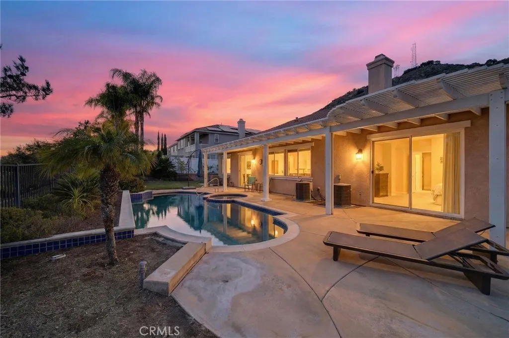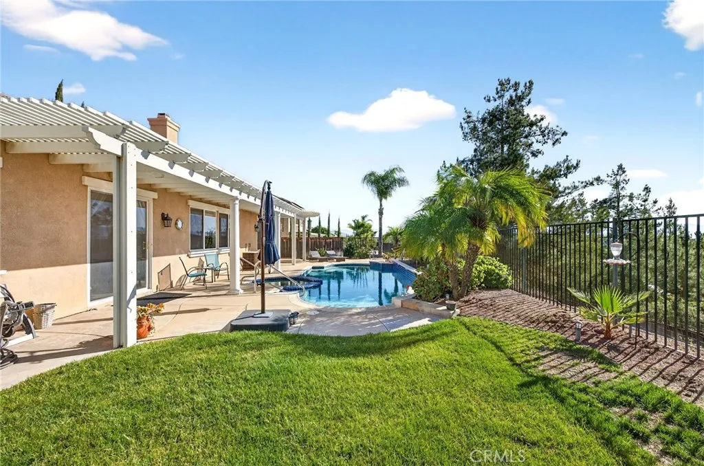 Welcome to this beautifully upgraded Murrieta Heights home, perfectly centrally located and offering breathtaking city views with no front neighbors. This turn-key residence is nestled in a gated community and features a sparkling pool and spa, making it ideal for both relaxing and entertaining. The thoughtfully designed floor plan includes 3 bedrooms plus a spacious loft and a dedicated office with its own private entranceperfect for remote work or guests. The primary bedroom is conveniently located downstairs, providing comfort and privacy with your own entrance to the backyard amenities. A large side courtyard creates a charming private outdoor retreat, with French doors opening directly into the main living space, seamlessly blending indoor and outdoor living. Throughout the home, youll find beautiful flooring, vinyl fencing, and tasteful upgrades that make this home truly move-in ready. Enjoy serene valley views, easy maintenance, and a layout that fits todays lifestyle. Quick move-in available, so dont miss this rare opportunity to own a pool home with a view in one of Murrietas most desirable communities!