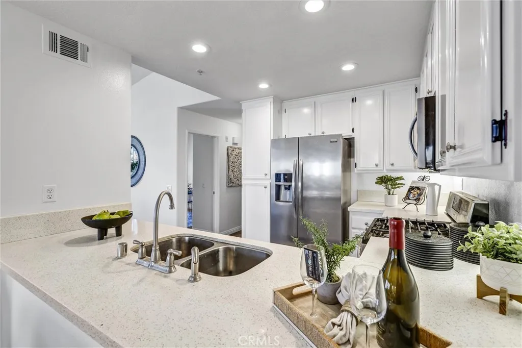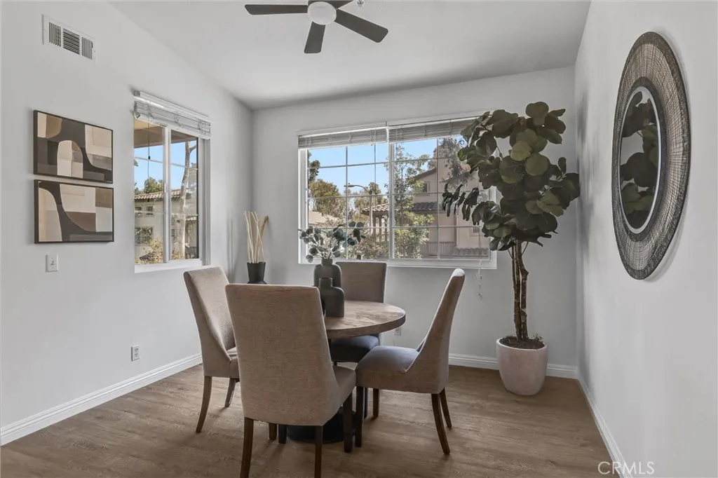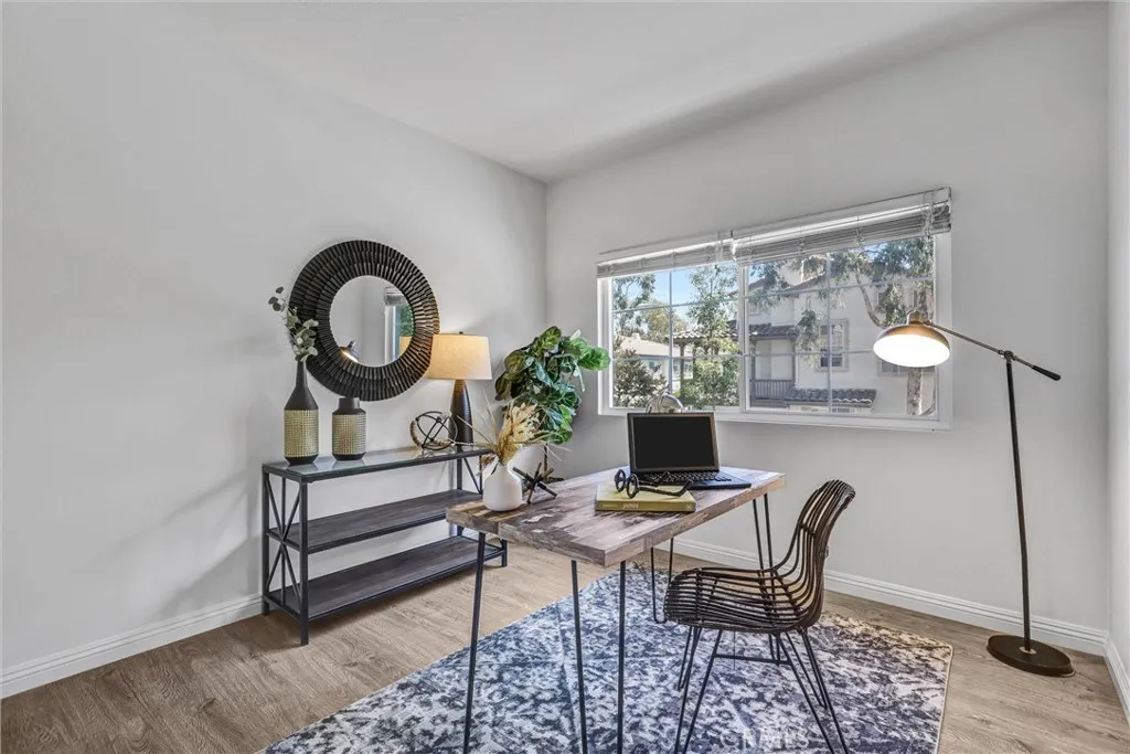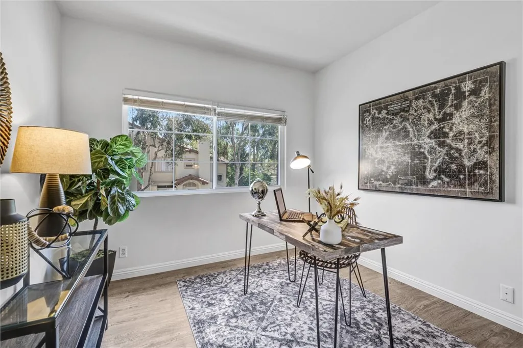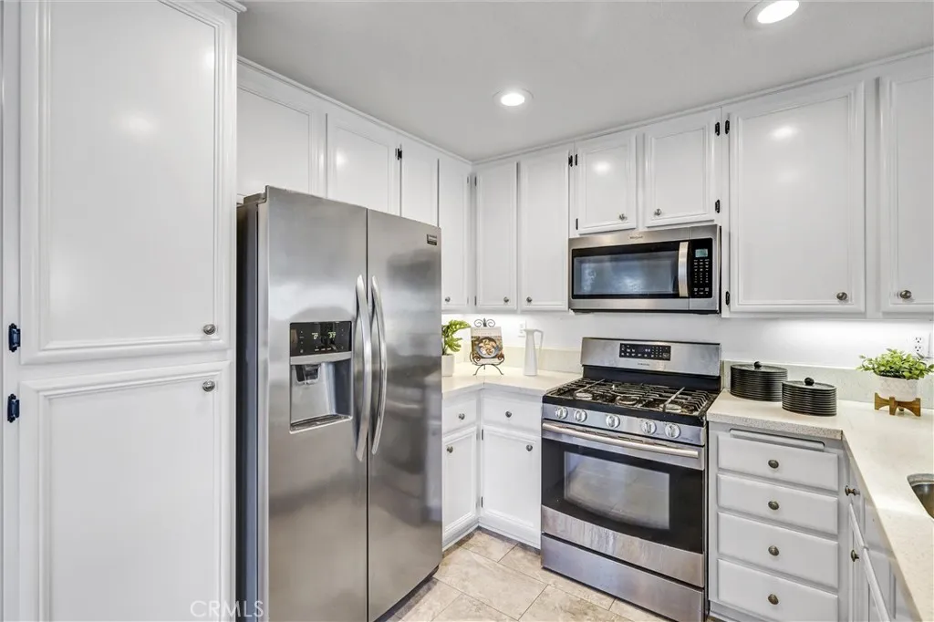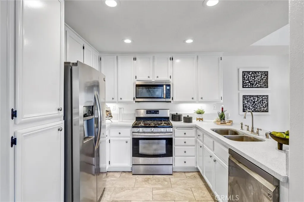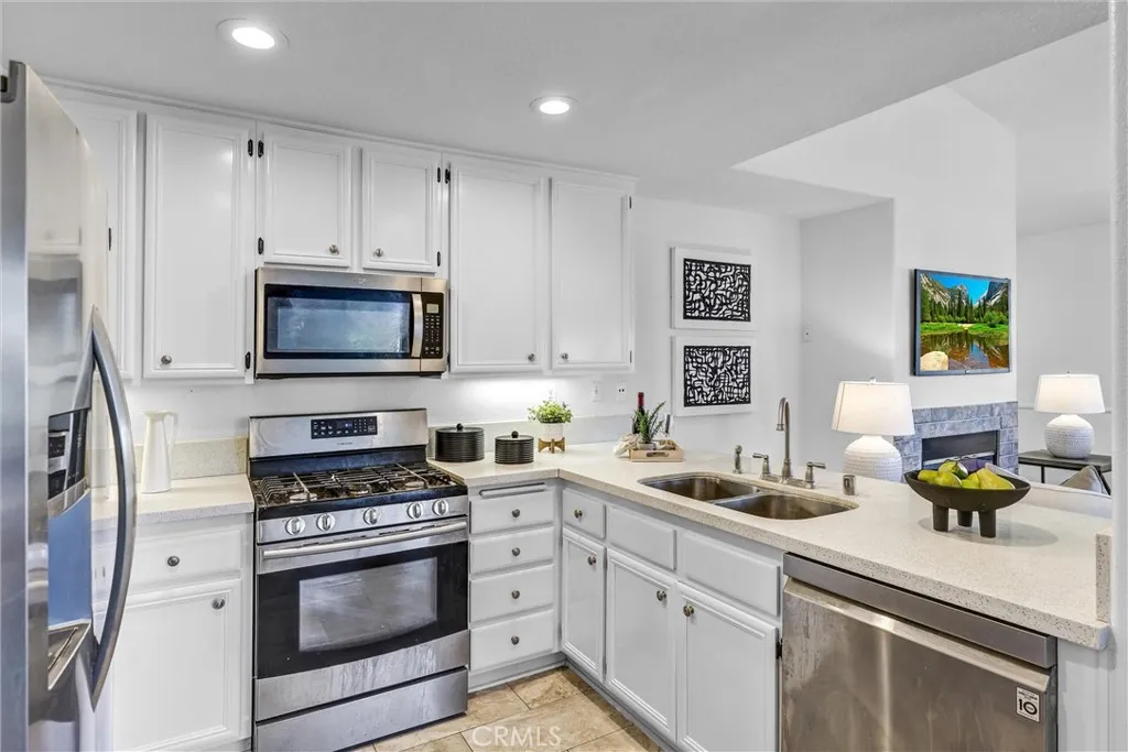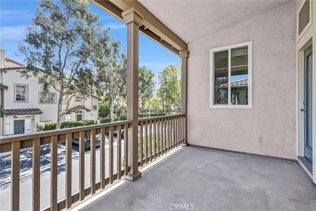 Welcome to the desirable neighborhood of Tierra Montanosa of Rancho Santa Margarita. This beautiful, turnkey end-unit carriage unit condo offers 2 upstairs bedrooms and 2 full bathrooms with an inviting open floor plan, soaring ceilings, and abundant natural light throughout with approximately 1,100 square feet of living space. The spacious living room features a cozy fireplace and opens to a lovely, oversized balcony perfect for relaxing. The modern kitchen is equipped with quartz countertops and stainless-steel appliances. The generous primary suite includes walk-in closet, new dual-sink vanity, and quartz countertops. Other upgrades include dual pane windows, recessed lights, ceiling fans, vinyl flooring, fresh neutral paint, custom bathroom lighting, and more. The attached garage offers direct entry into the home, and a reserved parking space is also included. Enjoy the convenient location within a short walk to Melinda Heights Elementary, ONeil Regional Park, sports courts, hiking and biking trails, shopping, and dining, within easy reach of Highway 241. Residents enjoy access to a variety of amenities, including resort style swimming pool/spa, Beach Club, play areas, summer concerts, and access to Rancho Santa Margarita Lake. It offers the perfect balance of luxury, convenience, and lifestyle. Dont miss the chance to make this stunning property your own!