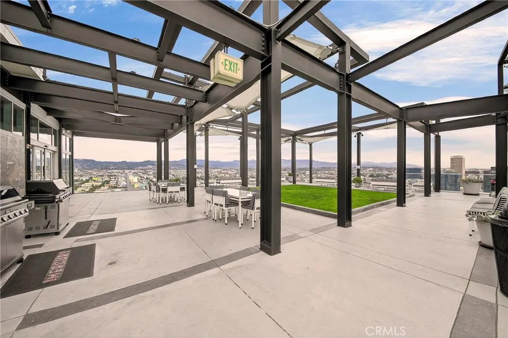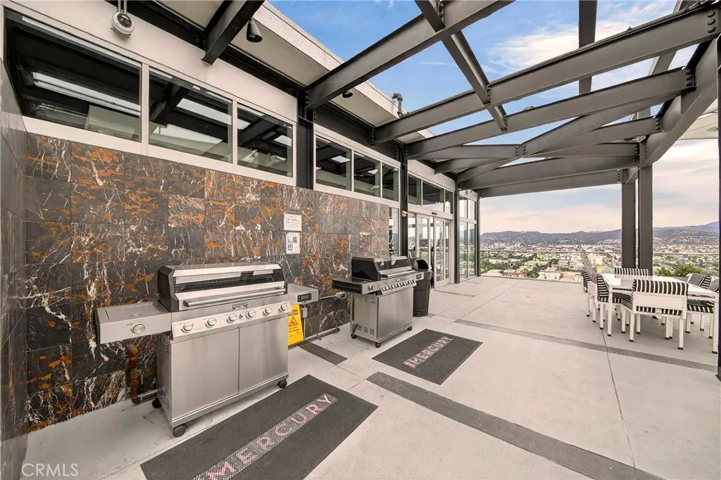 ** Price Improvement ** HIGHLY VERSATILE SOUTH FACING 1 bed / 1 bath "LIVE / WORK" loft style condo. See the last image for details on "LIVE/WORK" residential or business uses. One of the BEST and MOST DESIRED UNITS in the building, HIGHLY UPGRADED with STYLISH FINISHES and APPLIANCES. Welcome to REFINED HIGH-RISE LA URBAN LIVING at the MERCURY (formerly The Getty Building commissioned by J. Paul "GETTY" and designed by renowned architect CLAUD BEELMAN), one of the LA's MOST ICONIC RESIDENTIAL TOWERS along the WILSHIRE CORRIDOR. Centrally located at the PROMINENT corner of WILSHIRE and WESTERN, the building is directly across from the historically significant Art Deco landmark, THE WILTERN THEATRE and PELLISSIER BUILDING. This elegant SOUTH-FACING 1-BEDROOM, 1-BATHROOM RESIDENCE offers a flood of natural light, open-concept layout with UNOBSTRUCTED CITY VIEWS to USC, etc. Inspired by NEW YORKSTYLE LOFT LIVING, the home features stylish natural tone FLOORING with dark wire-brushed textures, rich color variation, and multi-stained finishes, complemented by soft gray-toned walls for a WARM YET MODERN AESTHETIC. LARGE WINDOWS flood the space with natural light, creating a calm & relaxed setting for both EVERYDAY LIVING and ENTERTAINING. The modern kitchen is equipped with RECENTLY UPGRADED STAINLESS STEEL APPLIANCES and flows seamlessly into the living area. Additional features include an IN-UNIT WASHER & DRYER, a spacious bathroom w/stone finish, and ample storage. Residents enjoy RESORT-STYLE ROOFTOP AMENITIES on SKY DECK, incl. a pool, hot tub, fitness center w/Hollywood sig