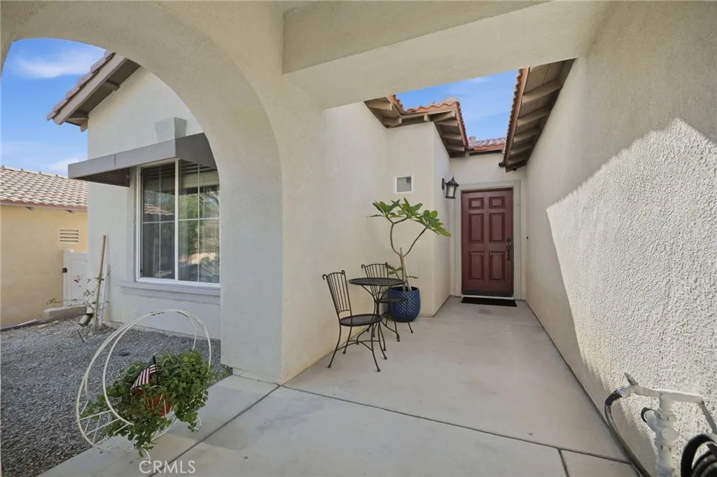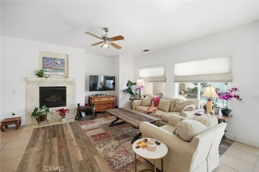 Price Adjustment - Seller will consider all offers. Rare Assumable Loan Opportunity $142,000 at 3.75%! Take advantage of below-market financing with this move-in-ready Desert Hot Springs home located in a peaceful, Mountain-View gated community. Situated on a semicul-de-sac and outside the sandy wind corridor, the neighborhood features underground utilities throughoutno electrical poles and reduced fire risk. Set on a flat, private lot with 7-foot backyard fencing, this 3-bedroom, 2-bath home offers a resort-style outdoor retreat with a pristine heated saltwater pool and spa, shaded patio for entertaining, and ample space for family gatherings. Inside, the home is bright and thoughtfully upgraded. The spacious living room features recessed lighting and a cozy gas fireplace. The beautifully remodeled kitchen includes a large granite center island and newer appliancesperfect for both casual meals and hosting. All three bedrooms offer generous closet space, blackout blinds, and durable Republic flooring installed just three years ago. Both bathrooms have been tastefully remodeled within the past year. The large primary suite opens through sliding doors to a private sitting area overlooking the backyard and pool, and includes a newly remodeled EnSuite bathroom. Additional features include: Whole-home LifeSource water softening system Water heater replaced 2 years ago Solar panels to reduce energy costs (approx. $101/month) This home offers comfort, efficiency, privacy, and a rare financing advantagean exceptional opportunity in todays market.