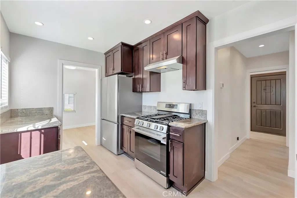 Experience modern Los Angeles living at its finest in this beautifully reimagined residence at 145 S Woods Ave. Offering an expansive backyard with incredible ADU potentialperfect for those looking to build equity or create a rental income stream. Meticulously remodeled and bathed in natural light, this home has been extensively refreshed highlighted by new flooring, fresh paint, and energy-efficient dual-pane windows throughout. The remodeled kitchen is a standout, boasting sleek updated cabinetry, elegant granite countertops, and stainless steel appliances including a 5-burner stove. Beyond the aesthetic upgrades, enjoy the comfort of central air and heat, a completely renovated bathroom, and the convenience of walk-in closets. The exterior is equally impressive, offering a huge yard, long driveway and a detached 2-car garage. This turn-key gem offers the perfect blend of contemporary style and future investment upside in a prime location.