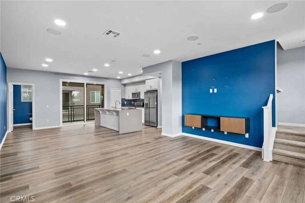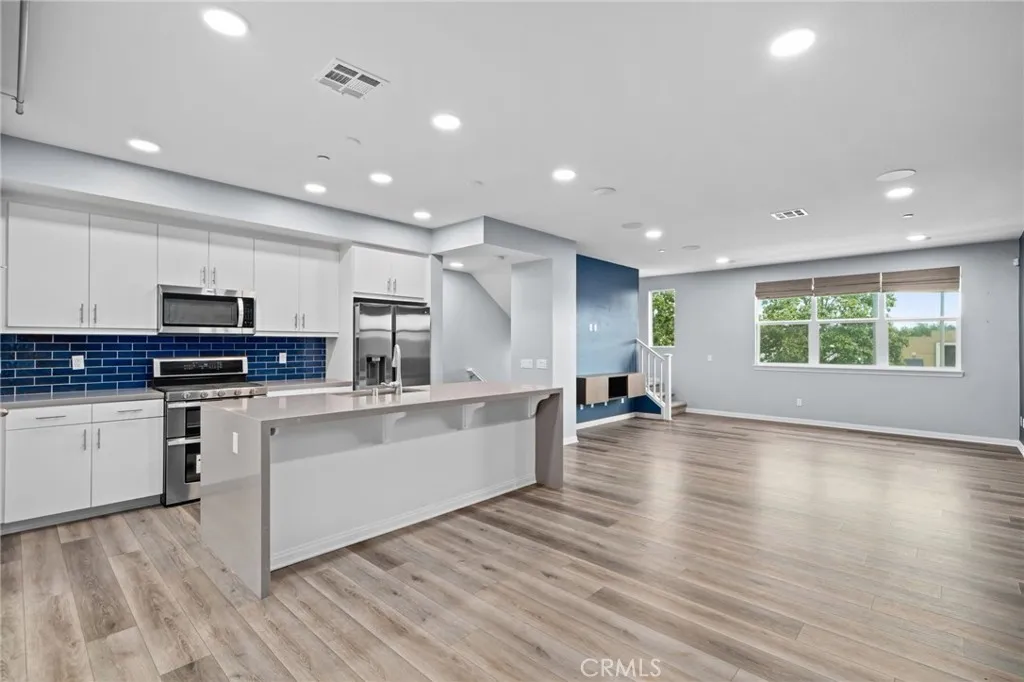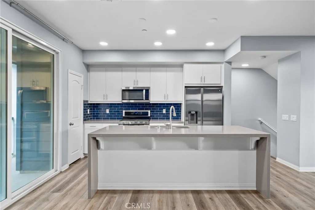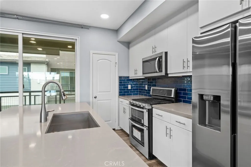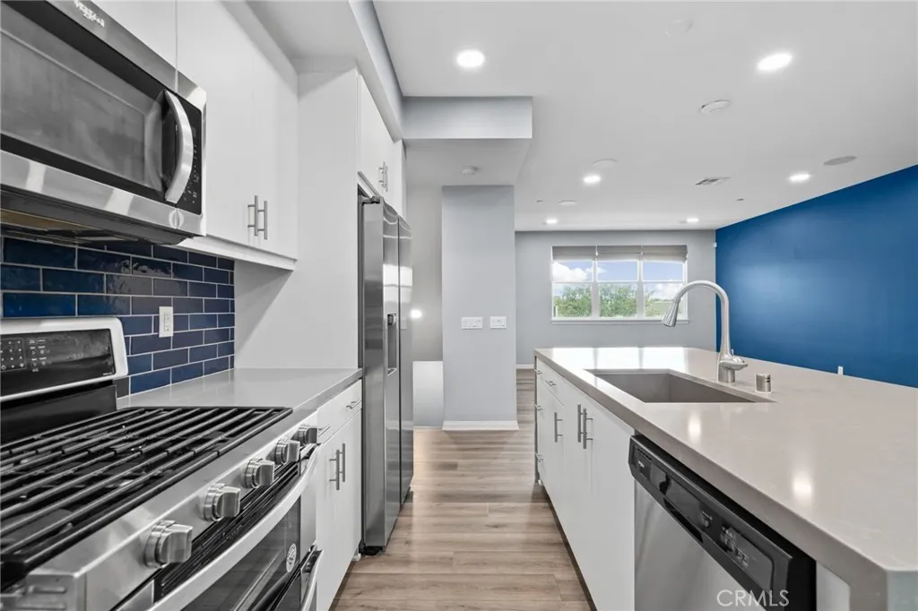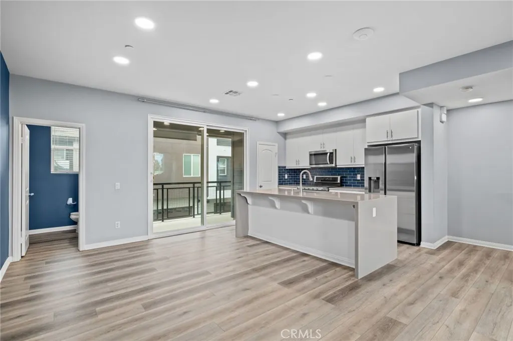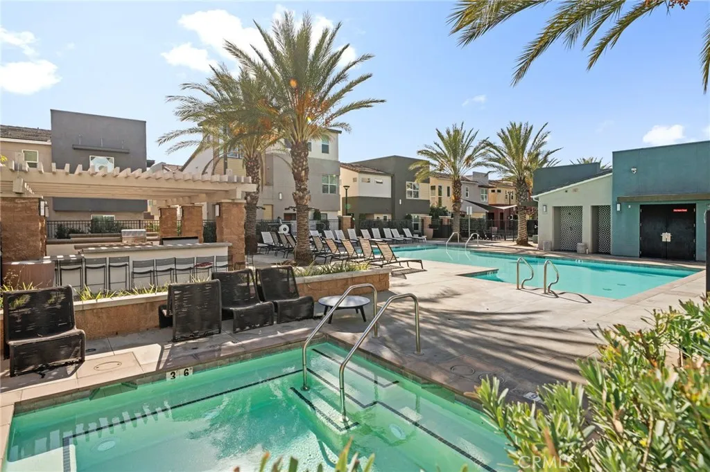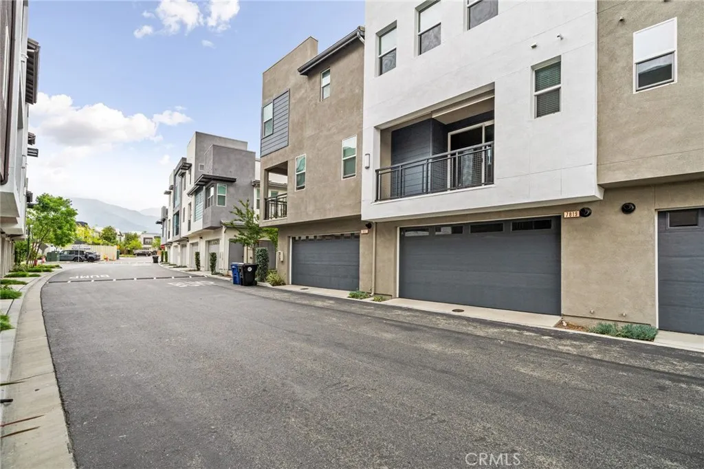 Welcome to this stylish three-level condo offering 3 bedrooms and 3 bathrooms with a thoughtfully designed layout perfect for modern living. On the entry level, youll find a versatile office or den, ideal for working from home or a private retreat, along with a convenient powder bath and access to the two-car garage located at the rear. The second level is the heart of the home, featuring a bright open-concept floor plan with a spacious family room, dining area, and a stunning kitchen. The kitchen showcases a waterfall-edge island, ample cabinetry, pantry and and seamless flow for entertaining. Sliding glass doors lead to a private balconyperfect for morning coffee or evening relaxation. An additional powder bath on this level adds extra convenience. Upstairs, the third level offers a relaxing primary suite complete with a walk-in closet and a spa-like primary bathroom featuring dual sinks and a walk-in shower. Two additional bedrooms share a full bathroom, and a laundry closet with space for a stackable washer and dryer is conveniently located on this floor. Residents enjoy fantastic community amenities, including a swimming pool, hot tub, clubhouse, BBQ and picnic areas and a fitness center. Ideally located near Target, Victoria Gardens, and with easy access to the 210 and 15 freeways, this home blends comfort, style, and convenience in one exceptional package.