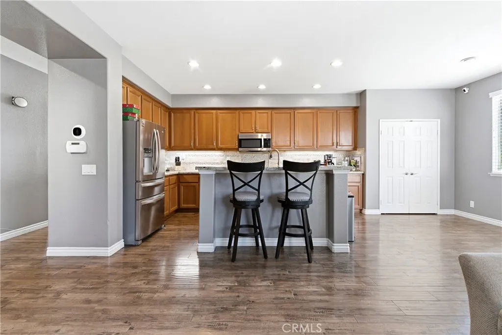Welcome to this beautiful 5-bedroom, 2 3/4-bath home with approximately 3,000 sq ft in a desirable Eastvale neighborhood. Spacious floor plan featuring formal living and dining rooms, open kitchen with ample cabinetry and breakfast bar, and family room with fireplace. One bedroom and full bath downstairs. Large primary suite with walk-in closet, dual sinks, separate tub and shower. Entertainers backyard with pool, spa, and firepit. Additional features include solar, multiple AC units, and a 3-car garage. Located in the Corona-Norco Unified School District with Eastvale Elementary, River Heights Middle School, and Roosevelt High School within walking distance. Close to parks, shopping, dining, and easy access to the 15 Freeway.