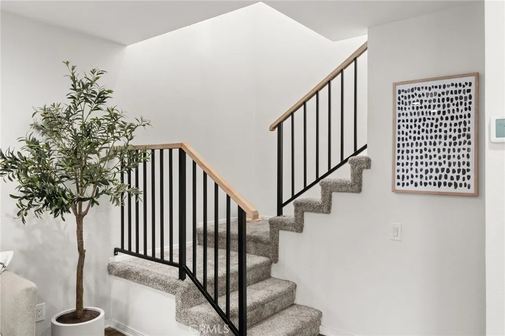 Welcome to the Fairmont Hill community in the Land of Gracious Living. Nestled in the hills of Yorba Linda, this charming 2-bedroom, 1.5-bath condo enjoys a premier location near one of the community pools, spa, and a serene grassy greenbeltperfect for relaxing with friends and family or enjoying spectacular sunsets..Step inside to a bright and inviting living room featuring recessed lighting and easy-care tile flooring throughout the main level. Just off the living area is a convenient half bath for guests. The kitchen is beautifully updated with granite countertops, brand-new tile backsplash, stainless steel gas range, built-in microwave, and dishwasher. The individual indoor laundry room provides direct access to the private one-car garage. Upstairs, the spacious primary bedroom offers a wall of mirrored closets and an updated full bathroom with a stylish barn door entry. The second bedroom is generously sizedideal for guests, a home office, or flex space. Recent upgrades include new upstairs carpet, a new water heater, updated kitchen and bathrooms, all new windows, and a new water oxidizer system in the kitchen. Enjoy seamless indoor-outdoor living from the dining area, which opens through a sliding door to a large private patio enclosed with vinyl fencing. A patio gate leads directly to the assigned parking space and a lush greenbelt with trees surrounding the unit offering an abundance of open space, more privacy and a serene, park-like setting. Additional highlights include central A/C and heating, two parking spaces (one-car garage plus one assigned space), and a w