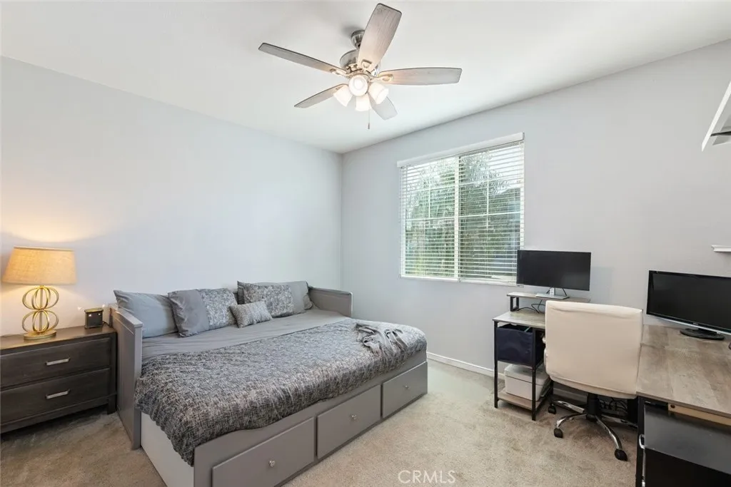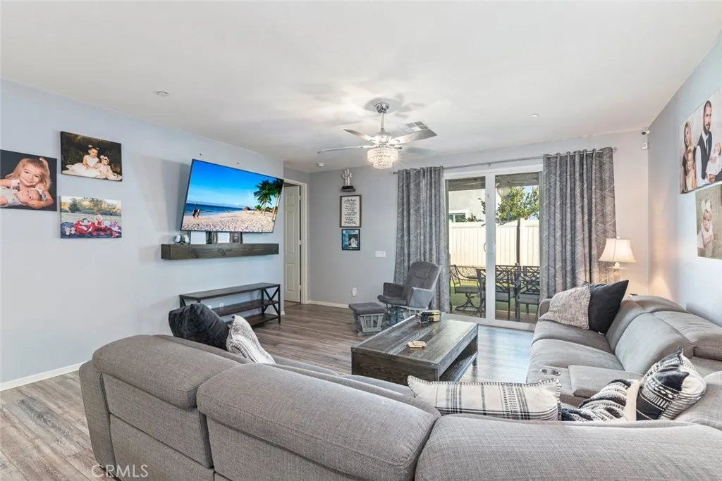 Welcome to this beautifully updated single-story home with PAID OFF SOLAR...and a assumable VA with a 2.375 rate...located in the highly sought-after Summerly community of Lake Elsinore, where modern comfort meets everyday convenience. This well-designed residence offers 3 spacious bedrooms, 2 full bathrooms, and a versatile office, which can easily be converted into a 4th bedroom, making it ideal for growing families, remote work, or multi-use living. A 2-car garage provides ample parking and storage, completing the functional layout of this inviting home. As you enter, youll immediately appreciate the open and airy floor plan, enhanced by wood flooring that flows seamlessly throughout the main living areas, creating a warm and cohesive feel. The heart of the home is the beautifully appointed kitchen, featuring granite countertops, a large center island with bar seating, stainless steel appliances, a generous pantry, and an abundance of cabinet spaceperfect for both everyday meals and entertaining guests. The kitchen opens effortlessly to the living and dining areas, making this home ideal for gatherings and comfortable daily living. The laundry room is large, functional, and thoughtfully designed, offering extensive cabinetry for storage and organization. Retreat to the primary bedroom, which is generous in scale and provides a peaceful escape. The ensuite bathroom includes dual sinks, a spacious walk-in shower, and ample counter space, offering both comfort and functionality. The two additional bedrooms are also generously sized and share a well-appointed hallway bathroo