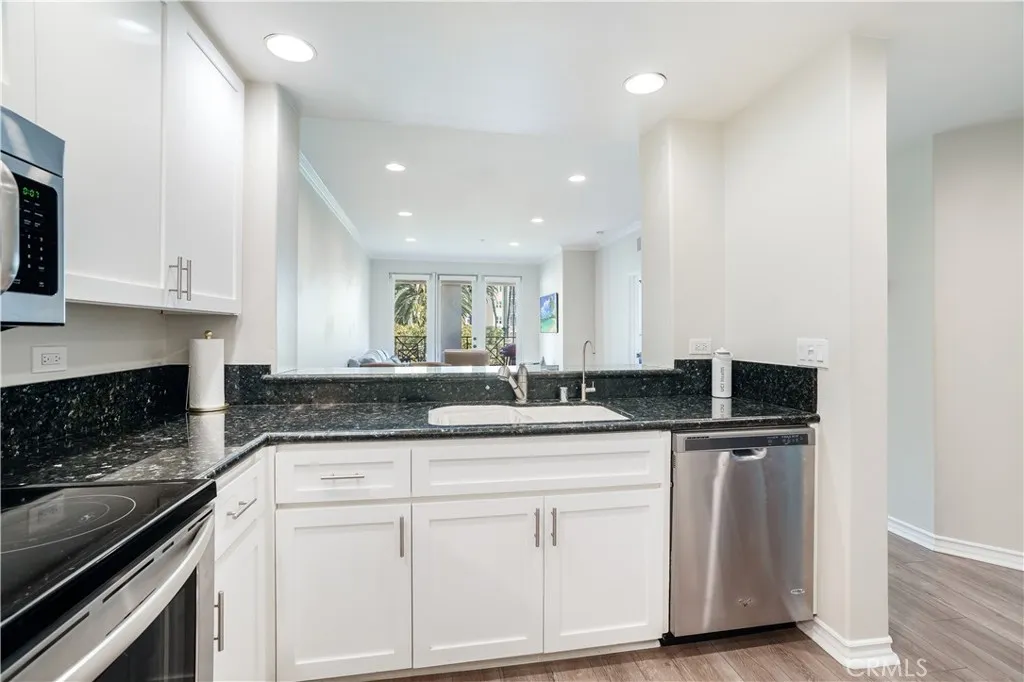 BACK ON MARKET! Experience elevated, resort-style living at The Metropolitan in this stunning, fully remodeled residence. This highly sought-after floor plan features 2 spacious bedrooms, 2 beautifully upgraded bathrooms, plus a versatile denperfect as a home office or optional third bedroom. Step inside to discover elegant hardwood laminate flooring, soaring 9-foot ceilings, and a seamless blend of modern design and comfort. The chef-inspired kitchen is a true showpiece, complete with sleek shaker cabinetry, gleaming granite countertops, a striking glass tile backsplash, and brand-new stainless steel appliances. A custom double-wide ceramic sink paired with brushed nickel fixtures adds both style and functionality, while recessed LED lighting throughout enhances the homes bright, contemporary feel. The primary suite is a private retreat, boasting an expansive walk-in closet and a spa-like bathroom with a custom dual-sink vanity, designer finishes, and a luxurious stone-clad soaking tub alongside a walk-in shower with pebble flooring and a frameless glass enclosure. The guest bedroom also features a walk-in closet, while the second bathroom impresses with quartz countertops, designer fixtures, and a beautifully finished