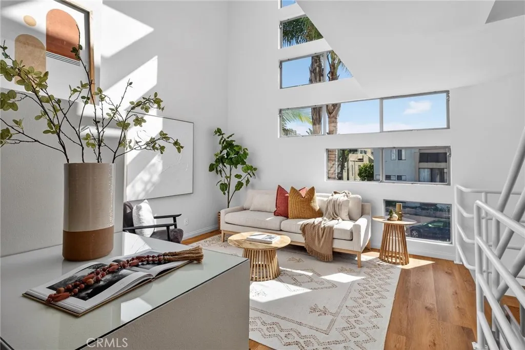 Step into this bright, sun-filled, architectural townhouse offering a 2-bedroom + loft layout designed for both comfort and style. The reverse floor plan places two bedrooms on the first level, sharing a full bathroomperfect for privacy and separation from the main living spaces. Upstairs, the main living level is filled with natural light and anchored by dramatic windows that soar to the high ceiling, creating an open, airy atmosphere. This inviting space includes a cozy living room with fireplace, dining area, a well-appointed kitchen with Viking appliances, and an additional bathroomideal for everyday living and entertaining. The top floor features a versatile loft, offering the flexibility of a home office, guest space, or potential third bedroom. Step outside to the upper deck, an ideal spot for hosting friends or enjoying coastal evenings. Additional highlights include full-size side-by-side laundry, central A/C and heat, fresh paint, and two secure side-by-side parking spaces. Set within a well-maintained community, this home is just minutes from Montana Avenue, Main Street, and the Santa Monica beach, with easy access to world-class dining, shopping, parks, freeways, and public transportation. Whether youre looking for a primary residence, a coastal retreat, or a smart investment, this Santa Monica condo delivers exceptional light, location, and livability.