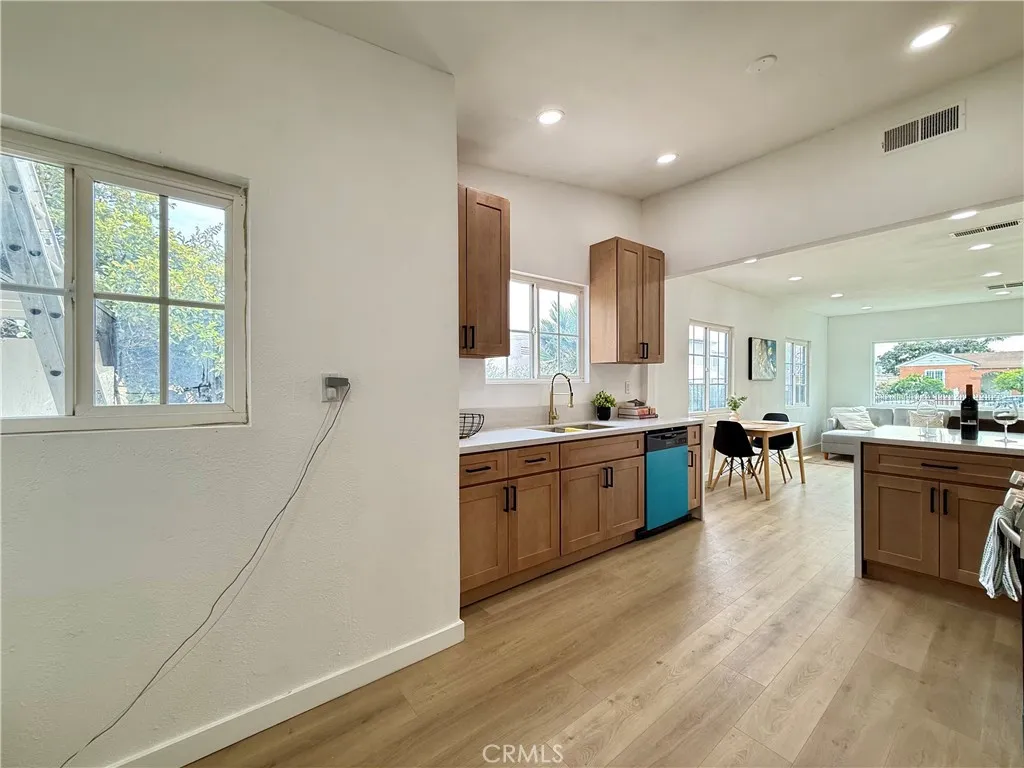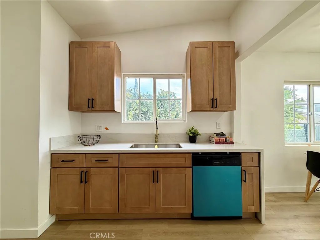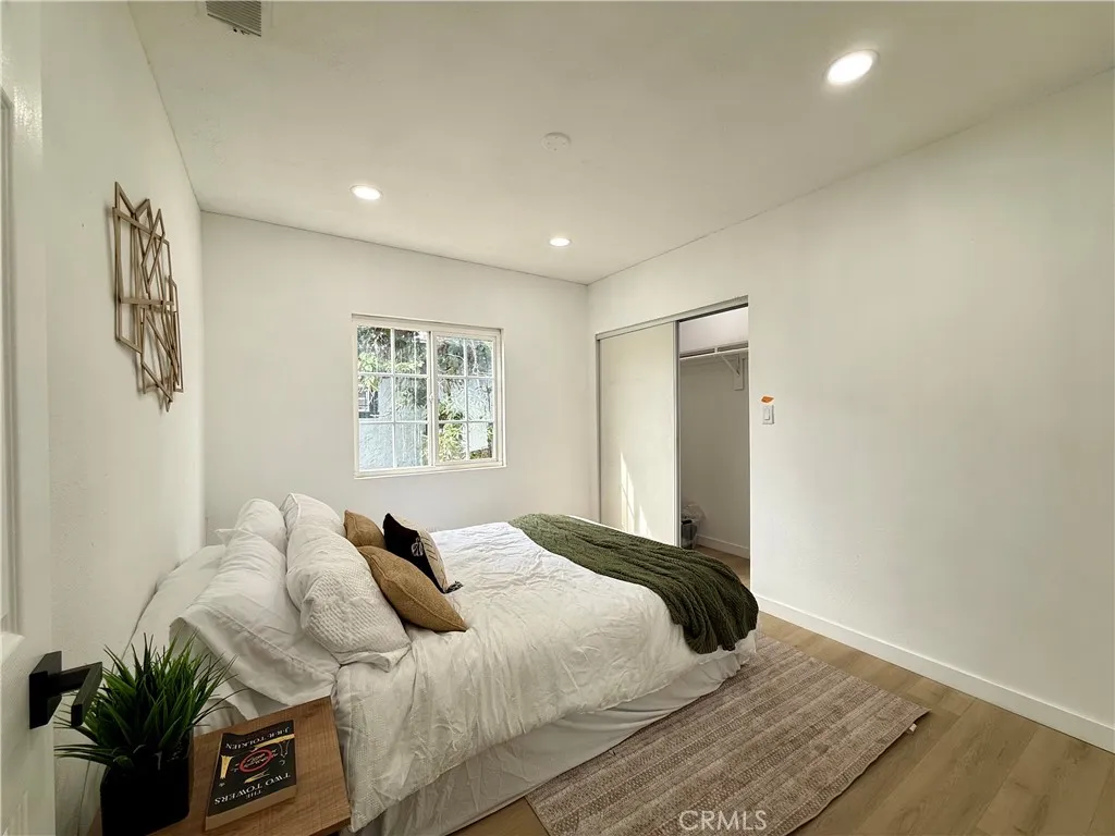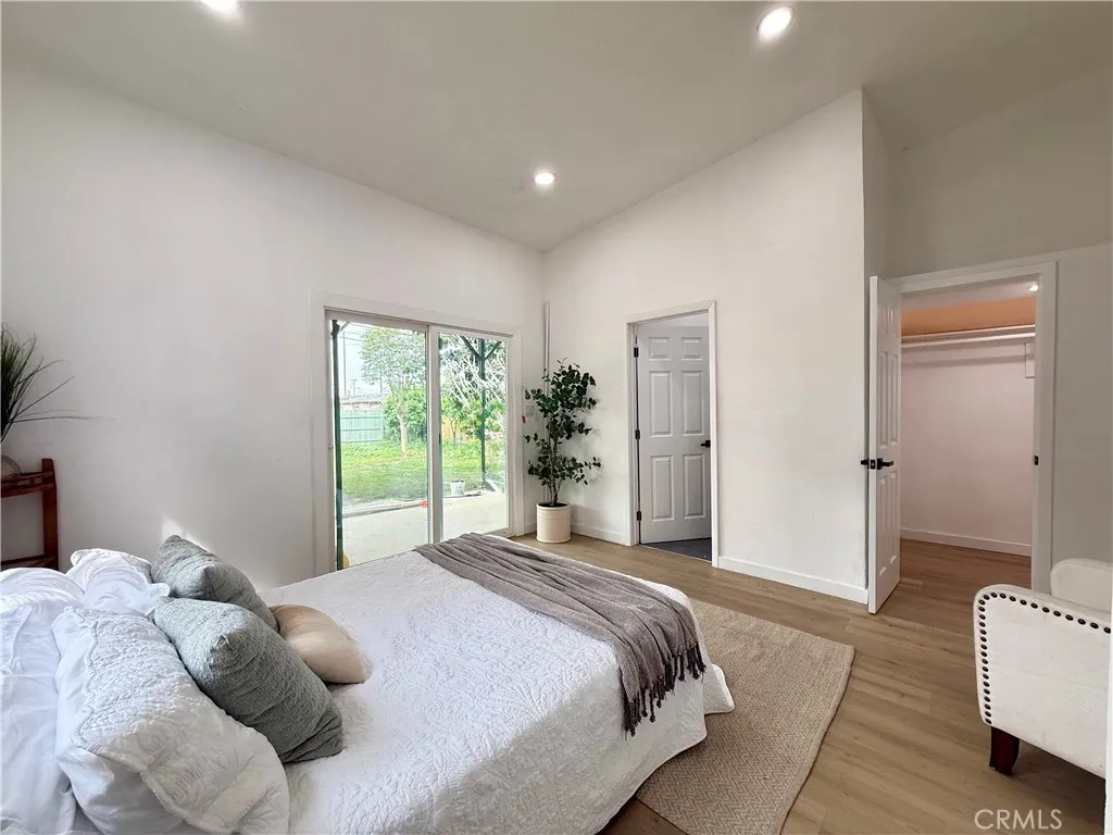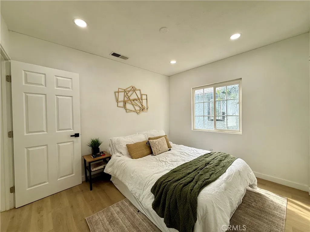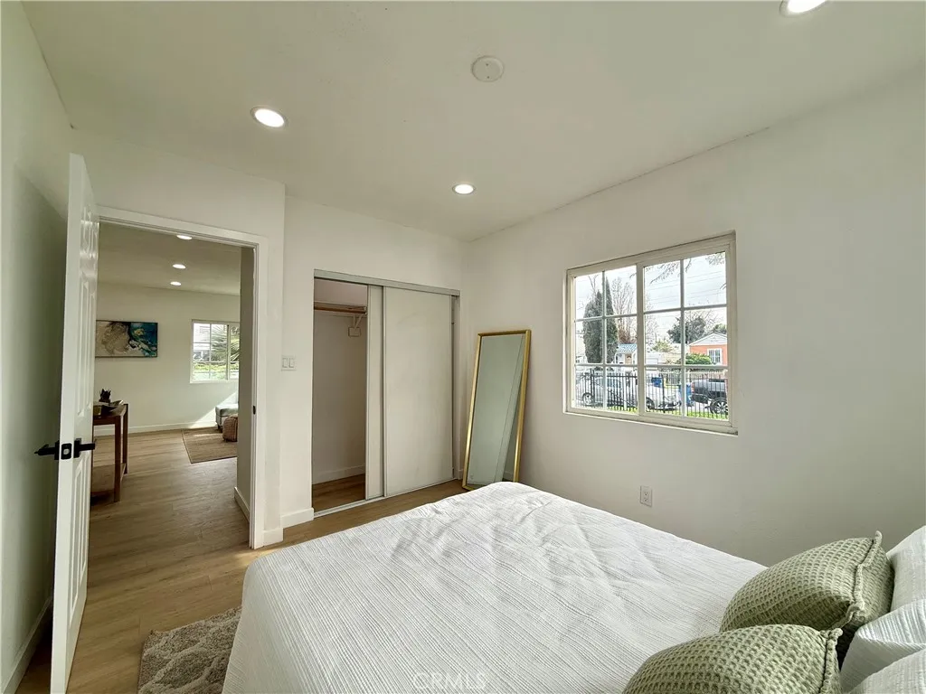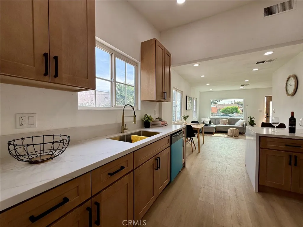Welcome to this fully renovated 3-bedroom, 2-bathroom California bungalow offering a 6,505 sq ft lot size and a 1,032 sq ft of beautifully designed living space on a generous lot with a very large backyard. Thoughtfully reimagined from top to bottom, this home blends timeless character with modern luxury for a true turn-key opportunity. Step inside to an open-concept layout highlighted by a spacious living room with a large picture window, high ceilings in the kitchen and primary suite, both with outside access and seamless indoor-outdoor flow. The kitchen features quartz countertops with connecting waterfall edges, a stylish peninsula, soft-close oak cabinetry, modern finishes with black and gold accents, a double sink, and a brand-new stainless steel oven with hood and dishwasher included. The primary suite offers a walk-in shower, floating double vanity, and striking tilework, while the secondary bathroom features a shower with tub, matching tile design, and a floating double vanityboth bathrooms finished with elegant gold accents throughout. Major upgrades include new roof, windows, doors, flooring, lighting, cabinets, countertops, bathrooms, kitchen, fencing, and central A/C and heat, providing peace of mind and long-term value. The home also offers private parking with a carport and a spacious driveway accommodating multiple vehicles. The expansive backyard is ideal for entertaining, future expansion, or additional living space, featuring clean landscaping, a beautiful wood privacy fence, and a large covered overhang area perfect for outdoor gatherings. Zoned R-2, the