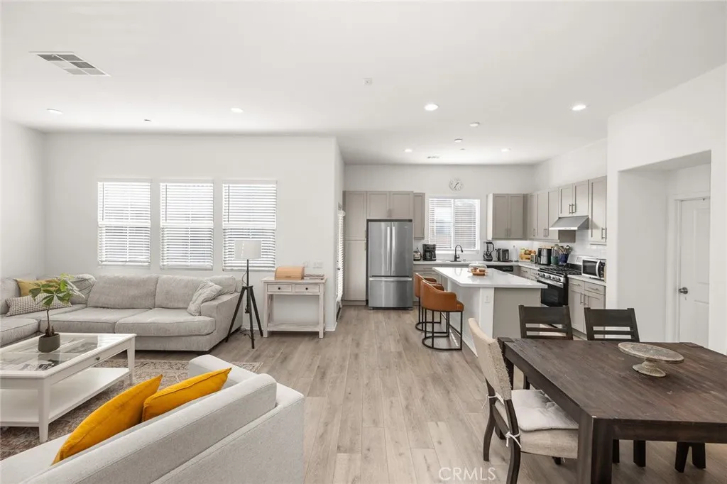 Located in one of Hacienda Heights most desirable and convenient neighborhoods, this quiet newer community offers a well-balanced lifestyle. This beautifully designed 3-bedroom townhome emphasizes comfortable indoor-outdoor living, starting with a charming front porch that creates a warm and inviting entry. A second-floor deck provides additional outdoor space, ideal for enjoying fresh breezes or relaxing with a book. The home features a highly desirable first-floor bedroom and full bathroom, offering flexibility for guests, home office use, or multi-generational living. Upstairs, the main living level showcases a spacious open-concept floor plan highlighted by soaring 10+ foot ceilings that enhance natural light and create an airy atmosphere . The kitchen and living areas are enhanced with numerous designer upgrades, including upgraded electrical, recessed LED lighting, painted gray maple shaker cabinetry throughout, and quartz kitchen countertops. An upgraded designer flooring package with laminate flooring runs through the main living spaces, providing both durability and modern style. Thoughtfully upgraded and well-maintained, this home offers modern comfort, functional design, and a desirable location within Hacienda Heights.