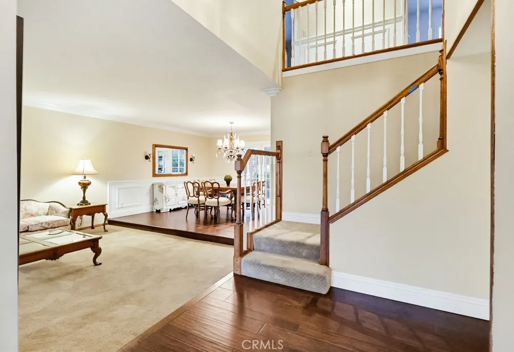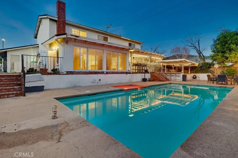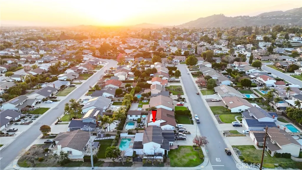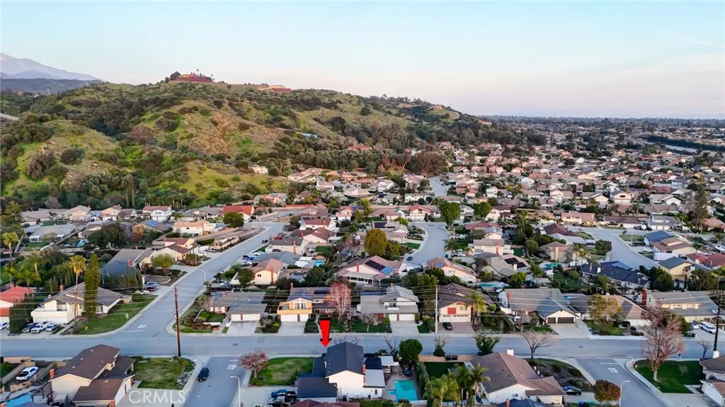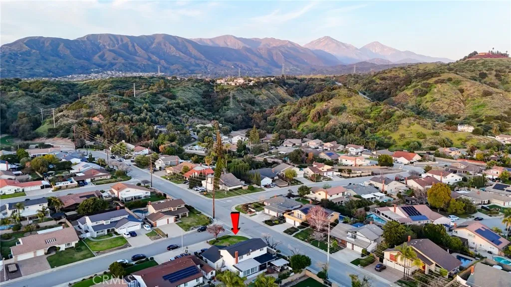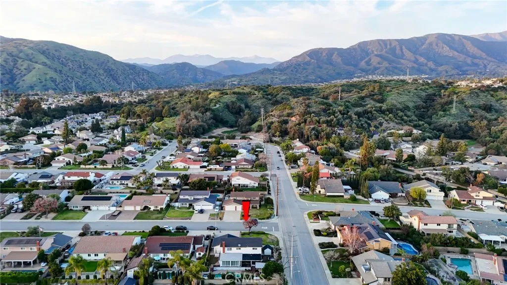 Welcome to 1962 Olivewood Street, a spacious two-story pool home ideally situated on a rare corner lot with beautiful views of the San Gabriel Mountainsthe only corner property along Emerald offering this unique vantage point. Excellent curb appeal welcomes you with a lush front lawn and inviting brick front porch and entry, creating a warm and timeless first impression. Inside, the home features a thoughtfully designed layout including a sunken family room, formal dining area, sunroom, and expansive living spaces ideal for both everyday living and entertaining. Plantation shutters throughout the home, including the sunroom, provide style and privacy, while crown molding throughout the downstairs living areas and in the primary bedroom adds architectural character. The living room and kitchen showcase coffered ceilings with recessed lighting along with a cozy gas fireplace featuring a brick hearth and wood mantle, creating an inviting central gathering space. Beautiful wood flooring flows throughout the kitchen, dining, and family room areas, enhancing warmth and continuity throughout the main level. The updated kitchen is designed with both functionality and style in mind, featuring shaker-style cabinetry, quartz countertops, subway tile backsplash, and a custom mosaic accent backsplash behind the cooktop. Additional upgrades include rollout cabinet drawers and dual Lazy Susan storage, maximizing organization and usability. Upstairs, all bedrooms are generously sized and include ceiling fans, while the primary suite offers dual closets and crown molding, creating a comfort