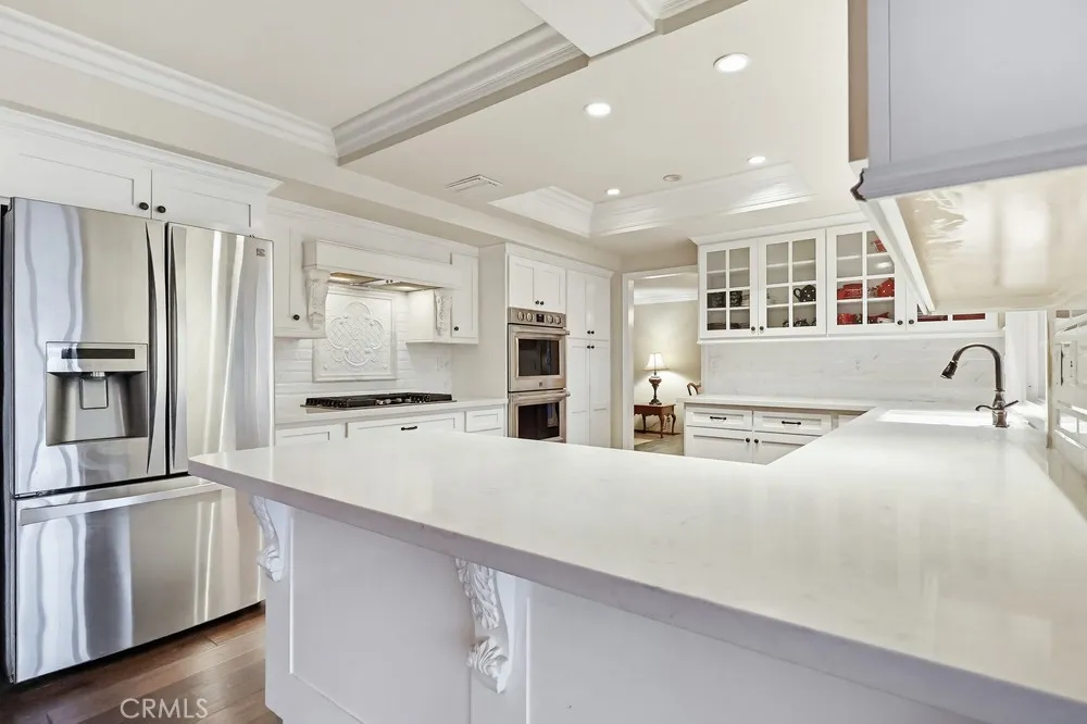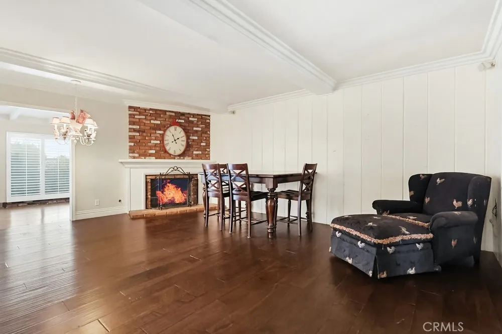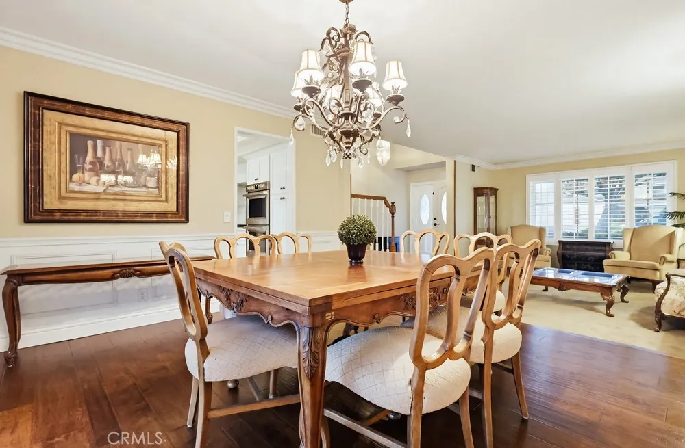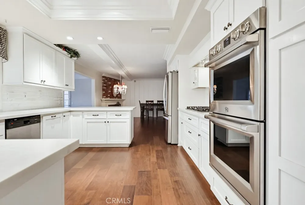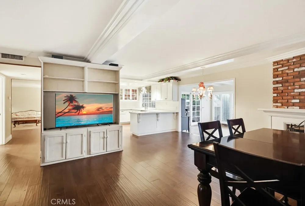 Welcome to 1962 Olivewood Street, a spacious two-story pool home ideally situated on a rare corner lot with beautiful views of the San Gabriel Mountainsthe only corner property along Emerald offering this unique vantage point. Excellent curb appeal welcomes you with a lush front lawn and inviting brick front porch and entry, creating a warm and timeless first impression. Inside, the home features a thoughtfully designed layout including a sunken family room, formal dining area, sunroom, and expansive living spaces ideal for both everyday living and entertaining. Plantation shutters throughout the home, including the sunroom, provide style and privacy, while crown molding throughout the downstairs living areas and in the primary bedroom adds architectural character. The living room and kitchen showcase coffered ceilings with recessed lighting along with a cozy gas fireplace featuring a brick hearth and wood mantle, creating an inviting central gathering space. Beautiful wood flooring flows throughout the kitchen, dining, and family room areas, enhancing warmth and continuity throughout the main level. The updated kitchen is designed with both functionality and style in mind, featuring shaker-style cabinetry, quartz countertops, subway tile backsplash, and a custom mosaic accent backsplash behind the cooktop. Additional upgrades include rollout cabinet drawers and dual Lazy Susan storage, maximizing organization and usability. Upstairs, all bedrooms are generously sized and include ceiling fans, while the primary suite offers dual closets and crown molding, creating a comfort
