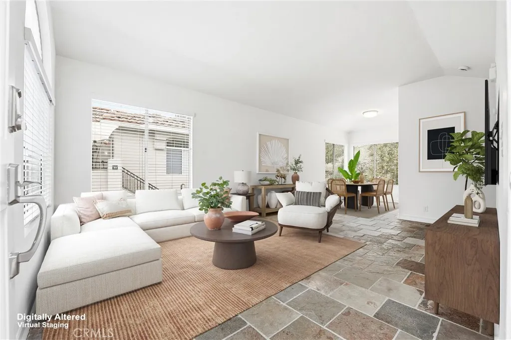 PRICE REDUCED FOR QUICK SALE - COZY, COMFORTABLE and AFFORDABLE. Location is everything, and this beautifully remodeled upper-level corner condo in the desirable Seagate Colony of Aliso Viejo offers comfort, privacy, and convenience. With no neighbors above or below, the light-filled home features high ceilings, recessed lighting, neutral tones, and slate flooring throughout. Open living and dining areas create an easy flow for everyday living and entertaining. The updated kitchen includes white shaker cabinets, quartz countertops, and stainless-steel appliances. The bedroom offers vaulted ceilings and mirrored closets, while the remodeled bathroom features updated cabinetry and a rare tub-and-shower combination. A private patio with washer and dryer extends the living space outdoors. Additional highlights include a detached one-car garage, newer HVAC system, Nest thermostat, paid HOA assessment, and full community exterior painting and interior re-pipe. Residents enjoy pools, spas, fitness center, and clubhouse, all near shopping, dining, freeways, and Laguna Beach. Move-in ready coastal living awaits.