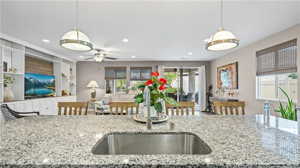 Price Adjustment! Single-story home on an expansive 10,000+ sq ft lot in the highly desirable Roripaugh Ranch community of Temecula, featuring solar to be paid off at close of escrow for added value and energy savings. Designed with an open-concept layout, the home offers high ceilings and abundant windows that fill the space with natural light. The gourmet kitchen is both stylish and functional, featuring stainless steel appliances, granite countertops, an oversized center island, white shaker cabinetry, and a walk-in pantry. It flows seamlessly into a spacious great room with a custom built-in entertainment center and a large dining areaideal for everyday living and entertaining. A versatile bonus room provides flexibility for a formal dining area, home office, or potential additional bedroom. The expansive primary suite serves as a private retreat with dual walk-in closets, a soaking tub, and a separate shower. Two additional generously sized bedrooms are tucked away along a private hallway, along with a bright laundry room. Luxury vinyl plank flooring runs throughout, offering durability and low maintenance. Additional energy-efficient features include a tankless water heater, drip irrigation, and drought-tolerant landscaping. Residents of Roripaugh Ranch enjoy resort-style amenities including a clubhouse, pool and spa, 24-hour fitness center, tennis and basketball courts, parks, and scenic walking trails. Conveniently located near top-rated schools, shopping, dining, Temecula wineries, golf courses, and easy freeway access.