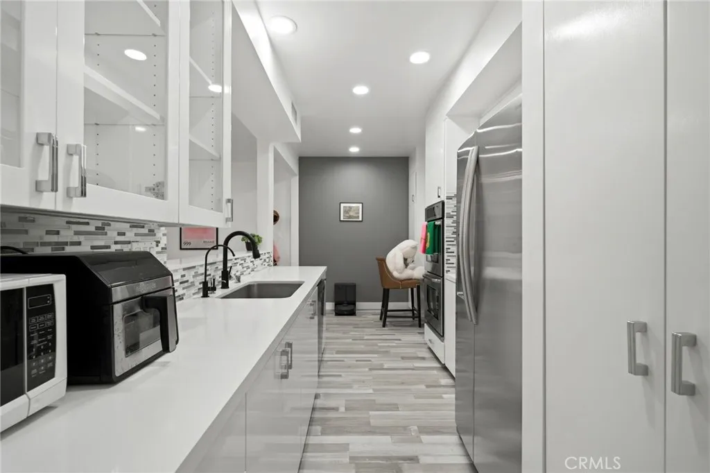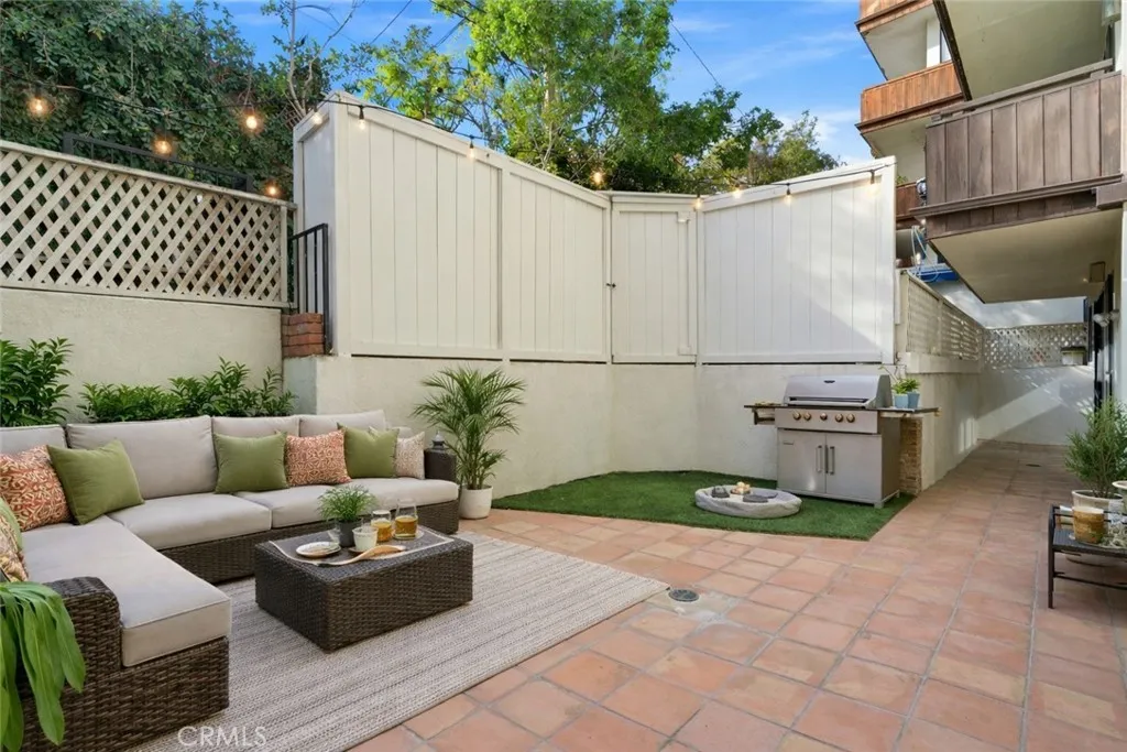 Welcome to 1277 Beverly Glen Blvd #107 a beautifully remodeled 2BR/2BA in the prime Westwood / Century City corridor, featuring an exceptionally rare ~500 sq ft private patio that makes the home feel like an effectively 2,100+ sq ft indoor-outdoor retreat. Accessible from both the living room and primary suite, this oversized outdoor space functions like a private backyardperfect for entertaining, dining al fresco, and pet-friendly living. Inside, enjoy a spacious open layout with a double-door entry, fireplace, crown moldings, wet bar, and theater-quality surround sound. High-end finishes include Italian wood-look porcelain tile, quartz countertops, stainless steel appliances, quartz countertops, and dimmable recessed LED lighting. The expansive primary suite offers its own fireplace, a walk-in closet with custom built-ins, and a spa-style bath with dual sinks, dual shower, and an oversized Jacuzzi tub. Community amenities include a pool and fitness center, all just minutes from UCLA, Westwood Village, Century City, shopping, dining, and major commuter routes. Move-in ready, light-filled, and truly one of a kind.