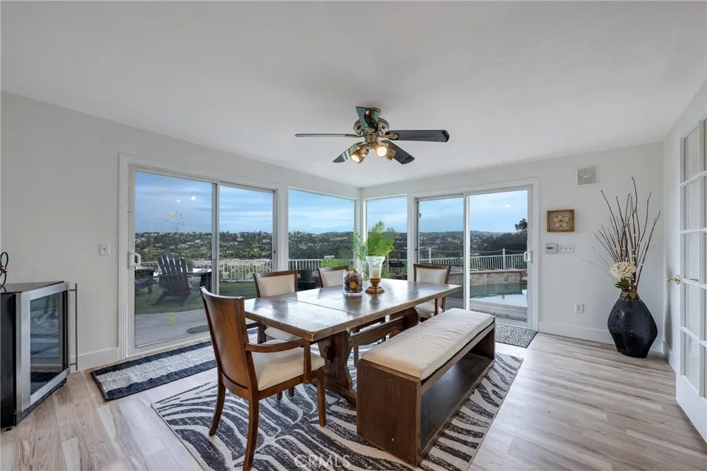 Talk about a million-dollar view! Nestled at the end of a quiet cul-de-sac and east facing view, this beautifully upgraded home offers breathtaking panoramic city and hillside views the perfect backdrop for daily living and entertaining. The home has been recently and extensively rehabbed, featuring new flooring, plush new carpet, fresh interior and exterior paint, and a brand-new central air and heating system. The concrete tile roof has also received a recent professional tune-up and includes a 2-year transferable warranty for added peace of mind. A 200 amp panel has been upgraded for modern day electrical use and water heater was put in 2023. Thoughtful enhancements include an enclosed patio addition, ideal for a home gym, meditation retreat, or flexible living space, plus a backup generator and solar water heater for the pool, offering both convenience and energy efficiency. The permitted downstairs addition provides a spacious option for a large dining area or expansive family room, perfect for gatherings and entertaining. Step outside to enjoy your private pool and spa, while the extra-large driveway offers abundant parking for multiple vehicles and even RV access. Located in a highly desirable neighborhood with excellent schools, this exceptional view home combines comfort, functionality, and prime location. Dont miss this rare opportunity schedule your private showing today! Price improvement 3/27 and seller motivated .