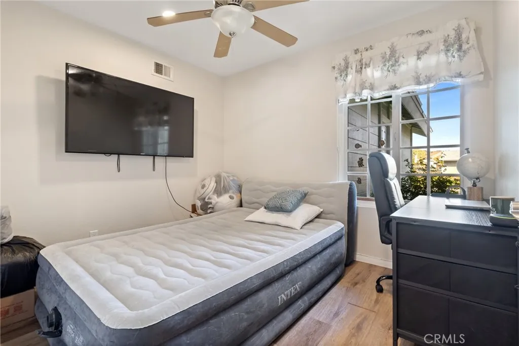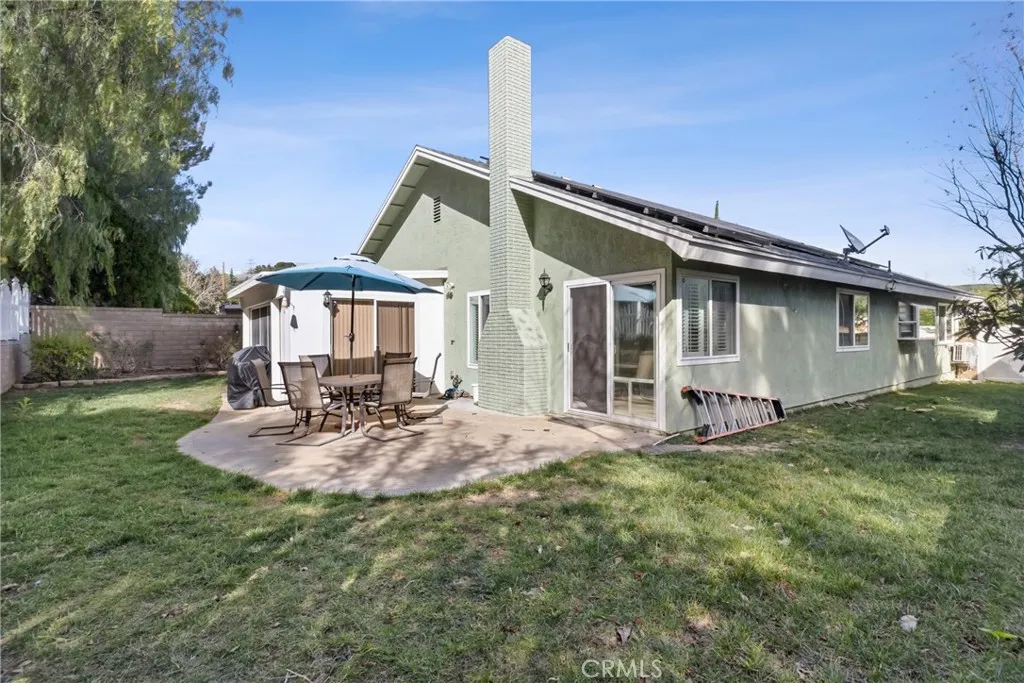 This beautifully maintained and thoughtfully updated single-family residence offers 1,624 square feet of inviting living space, blending timeless character with modern comfort in a desirable Valencia setting. The home features 4 bedrooms and 2 bathrooms, along with new flooring and fresh interior paint throughout, creating a cohesive and light-filled interior designed for longevity and everyday enjoyment. Vaulted ceilings, recessed lighting, and a neutral color palette enhance both form and function, allowing each space to adapt to changing needs over time. The kitchen includes updated cabinetry, countertops, quality appliances, and generous storage, flowing into a bright dining area that supports both daily routines and meaningful gatherings. A versatile bonus room adjacent to the kitchen offers flexible useideal for work, creativity, or additional living space as needs evolve. The primary bedroom provides a comfortable retreat with ample closet space and an en-suite bathroom. Additional bedrooms are well-proportioned and adaptable, supporting a variety of lifestyles and long-term uses. Outdoors, the property offers a covered patio and spacious grassy area, complemented by mature landscaping and a hillside backdropan inviting extension of the living space for rest, reflection, or connection. An attached garage adds convenience and practical storage. A notable feature of the home is the fully paid-off solar system, delivering long-term energy efficiency benefits with no lease or loan to assumean investment in sustainability and future-minded ownership. Conveniently located