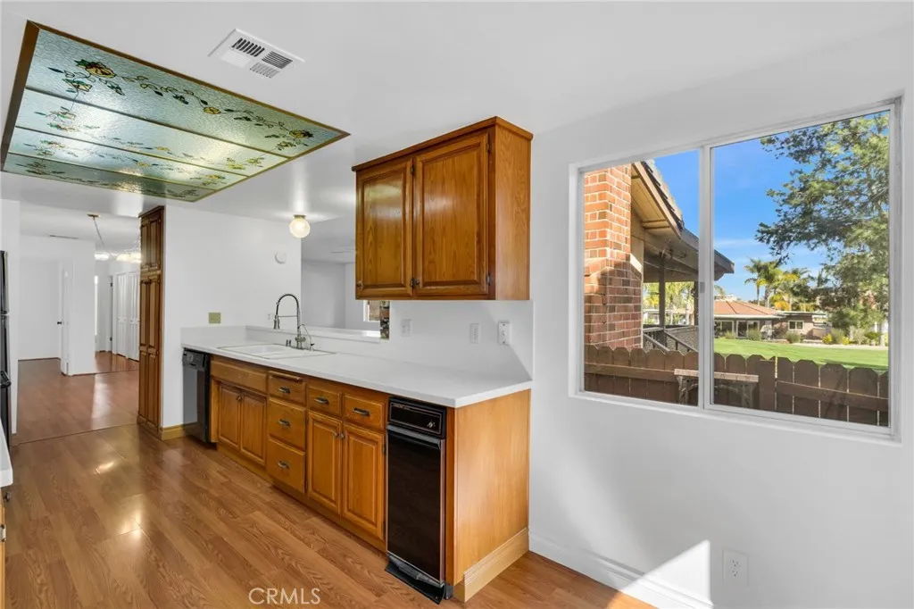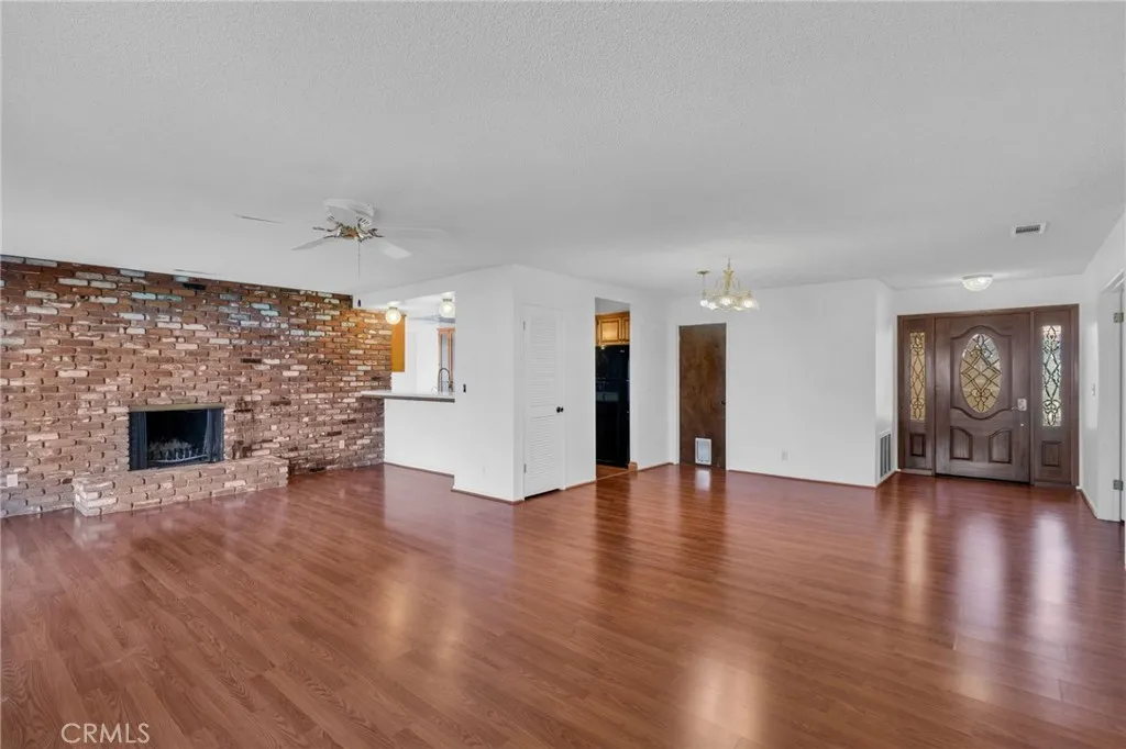 Beautifully positioned on the golf course within highly desirable, guard-gated community of Canyon Lake, this thoughtfully designed home offers fairway views, privacy, and an exceptional indoor-outdoor lifestyle. Located on a quiet street, the property features a large outdoor patio with direct golf course accessan ideal setting for entertaining or unwinding while taking in the tranquil surroundings. The interior welcomes you with a spacious living room highlighted by a classic brick fireplace, wood-style flooring, fresh interior paint, and brand-new carpet throughout. The kitchen is both functional and inviting, featuring stone-style countertops, extensive cabinetry, and ample counter spaceperfect for everyday living or hosting guests. The primary suite is a peaceful retreat, offering custom built-ins, a walk-in closet, and golf course views. The en-suite primary bathroom includes dual sinks and a walk-in shower. A full hallway bathroom serves the additional bedrooms. The third bedroom has been thoughtfully configured as a family room, complete with a second brick fireplace and built-in cabinetry, creating a warm and versatile living space. An additional office area with built-in cabinets provides an ideal workspace or study. Additional highlights include Canyon Lake access a three-car garage with direct interior access, plus a dedicated golf cart garage. Desert-friendly landscaping in both the front and backyard ensures low-maintenance living while complementing the surrounding environment. Ideally located near excellent restaurants and shopping, just minutes from the sce