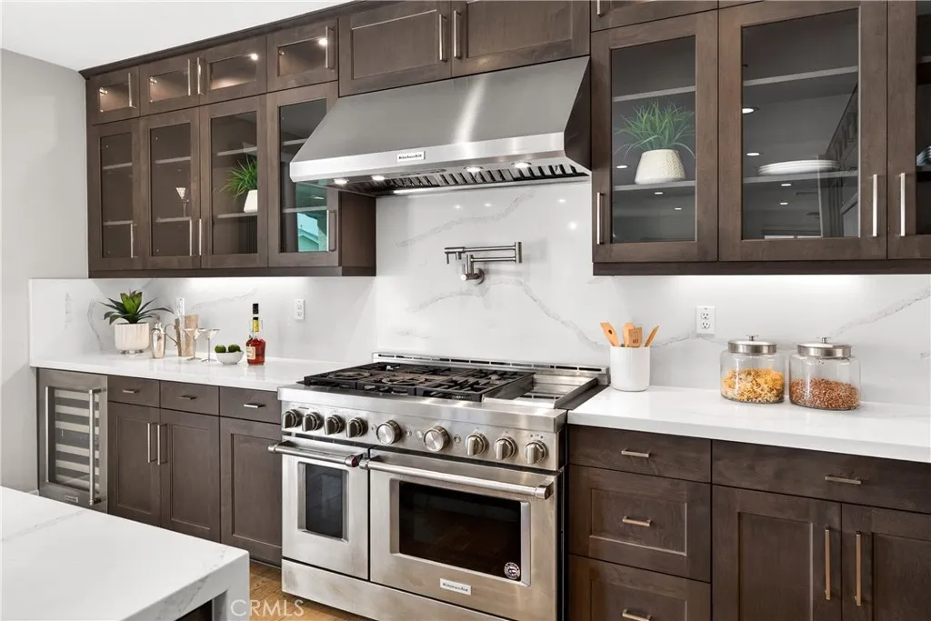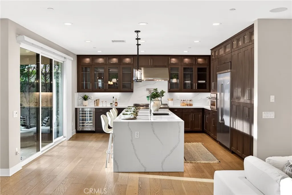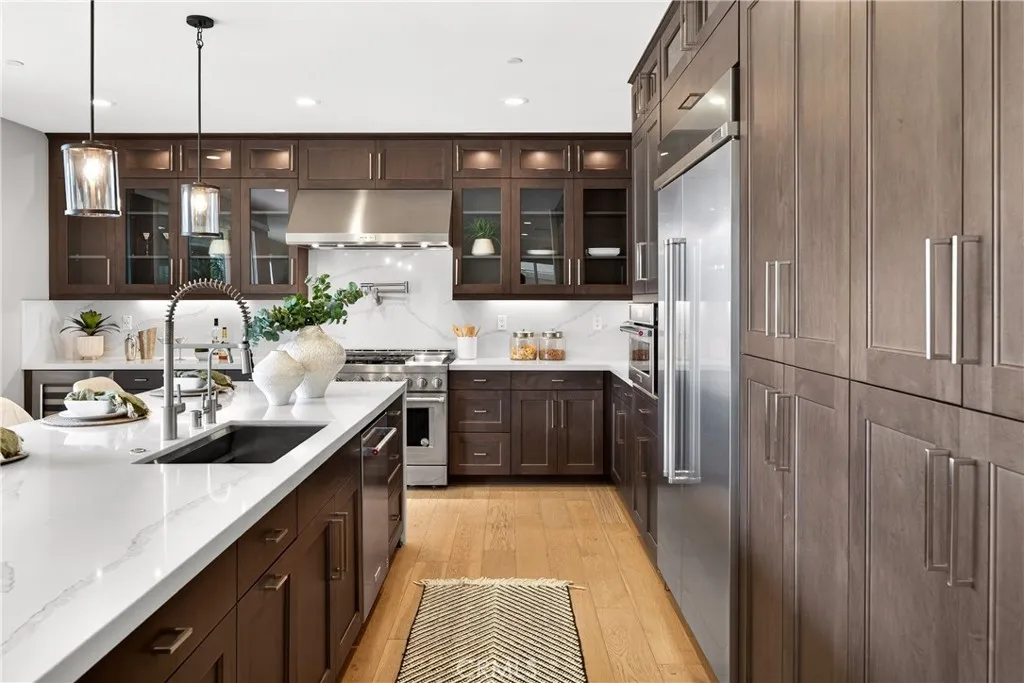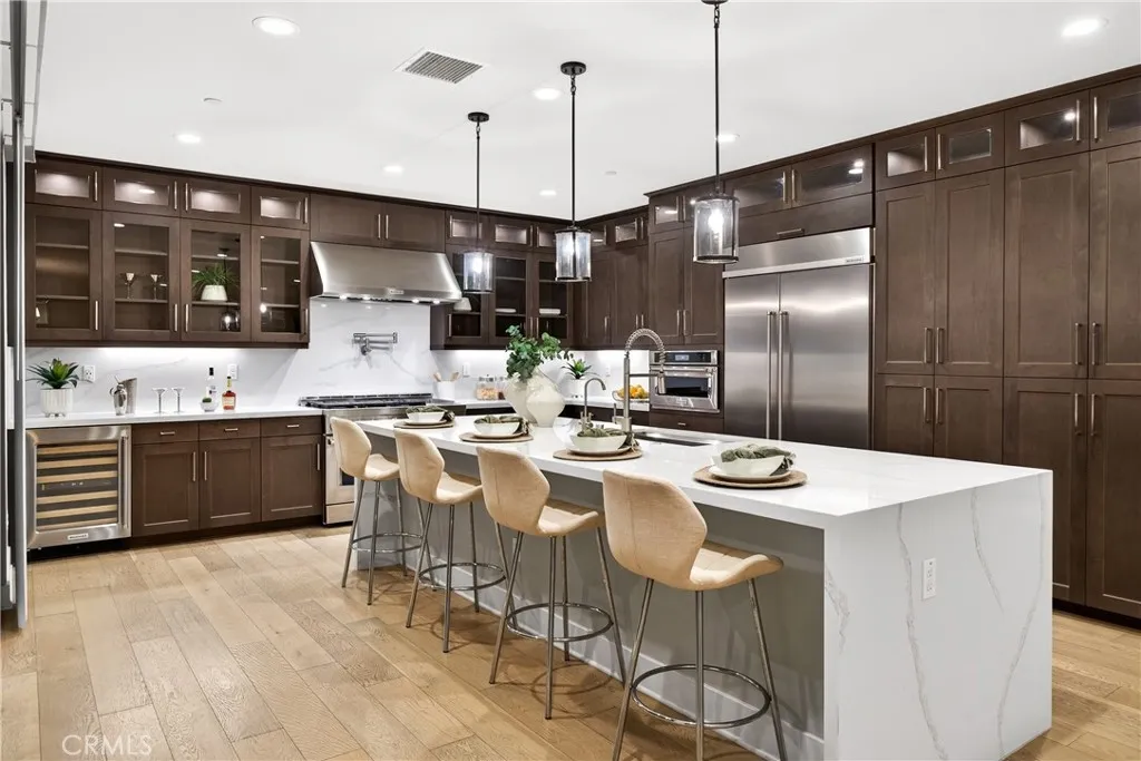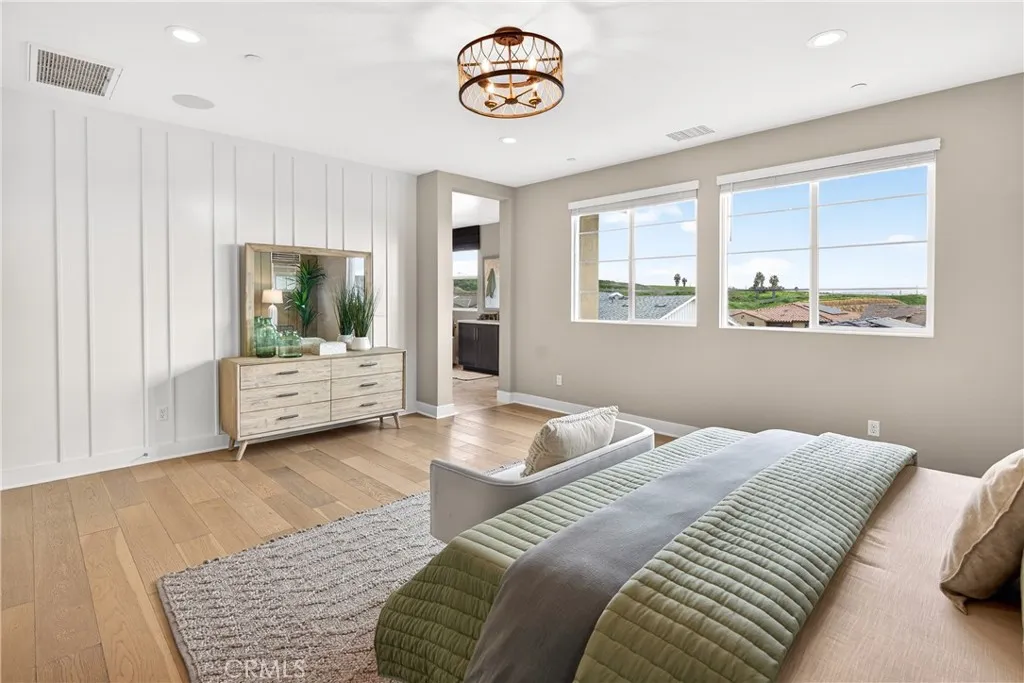 PONTE VISTA'S LUXURY ESTATE COLLECTION ORIGINAL MODEL HOME - UNOBSTRUCTED HARBOR & BRIDGE VIEWS - PREMIUM UPGRADES & CUSTOM FINISHES THROUGHOUT - OWNED 16-PANEL 5-KILOWATT SOLAR SYSTEM Ponte Vista is a gated community adjacent to Rancho Palos Verdes. Its luxury estates collection totals just 66 homes. Of those 66, only 21 have the largest floor plan. Of those 21, one was the premier model home. The one used to sell all the others. THIS IS THAT HOME. Five bedrooms, five bathrooms, 3,527 square feet on a 5,448-square-foot lot (BTV). Hardwood flooring throughout. Harbor views that will make you stop and stare. VIEWS & POSITIONING The builder chose this lot for their showcase model home. Unobstructed views of San Pedro Harbor and Vincent Thomas Bridge. Cruise ships docking in the channel. San Gabriel Mountains beyond on clear days. Sunset light across the port. Night illumination from bridge spans and container terminals. KITCHEN & MAIN LEVEL Professional-grade range and double ovens enable simultaneous cooking. Built-in wine fridge. Quartz spans the oversized island and perimeter countertops. Floor-to-ceiling soft-close cabinetry. Multi-panel window sliders retract completely, merging the great room with the covered patio. Thoughtfully landscaped backyard. Main-level guest suite with full bath provides privacy from upstairs sleeping quarters. PRIMARY SUITE & UPPER LEVEL The primary suite spans the home's rear elevation. Dual vanities separate morning routines. Glass-enclosed modern shower and standalone soaking tub. Walk-in closet for seasonal wardrobe rotation. Three addition
