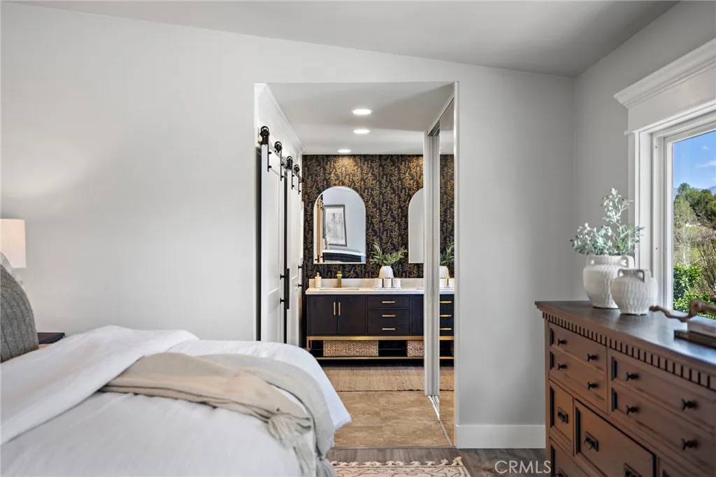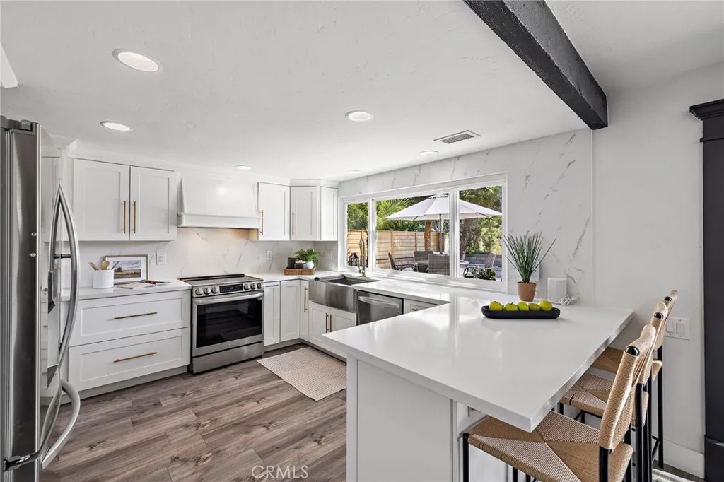 From the moment you arrive, this exceptional four bedroom, three bath residence captivates with a presence that simply feels like the one! The dramatic entry showcases a striking architectural staircase accented by custom wood slats with concealed storage, updated flooring and a statement chandelier that draws the eye upward. The open-concept living and dining areas, designed to maximize natural light, flow effortlessly from the foyer and are highlighted by a beautifully refreshed fireplace with custom built-in cabinetry and shelving, complemented by updated flooringideal for both everyday living and refined entertaining. The kitchen has been completely reimagined with new custom cabinetry, quartz countertops, stainless steel appliances, designer backsplash, upgraded fixtures, and new flooring, offering the perfect balance of style and functionality. A custom wine storage area with wine refrigerator and glass display nook adds a sophisticated touch, perfect for hosting. All bathrooms have been beautifully updated with new vanities, faucets, mirrors, flooring and lighting, along with thoughtful finishes throughout, including custom paneling in the first-floor bath. A well-planned laundry area with custom cabinetry maximizes everyday convenience and smart storage. Each bedroom has been freshly painted and enhanced with custom wood detailing. An oversized secondary bedroom features refined chair rail paneling, while the primary suite offers a serene retreat, highlighted by a beautifully appointed fireplace. The en-suite bath has been fully renovated for elevated comfort and ev