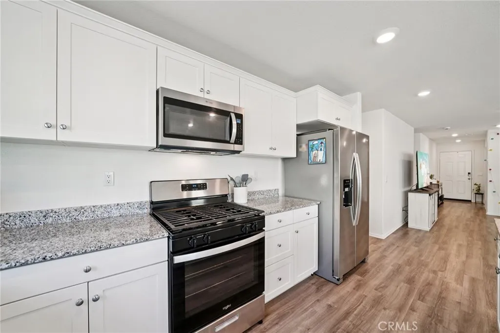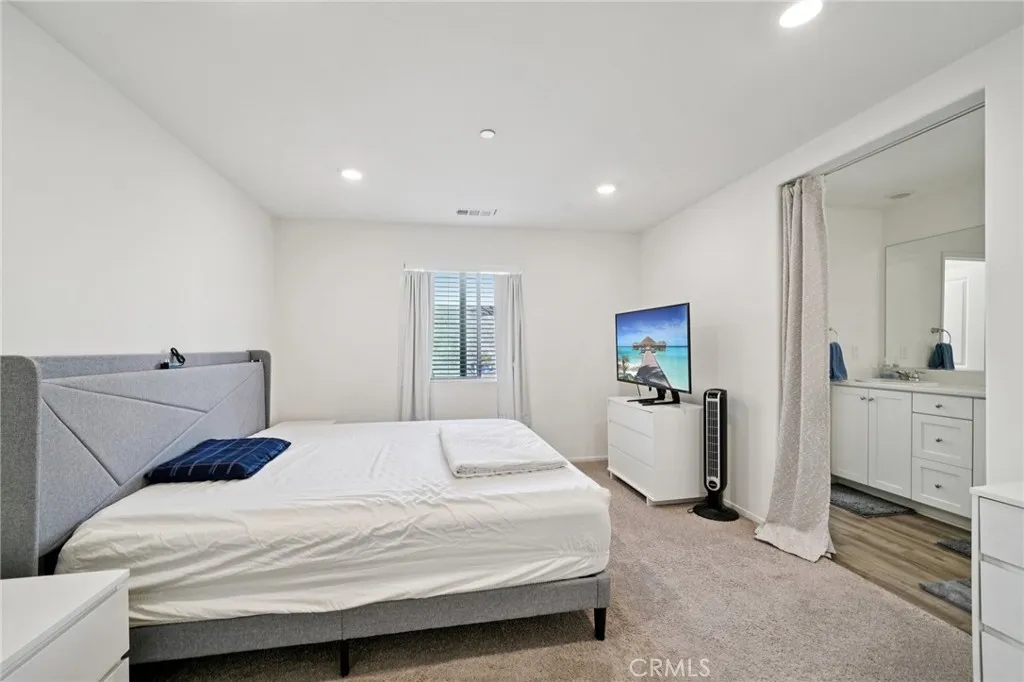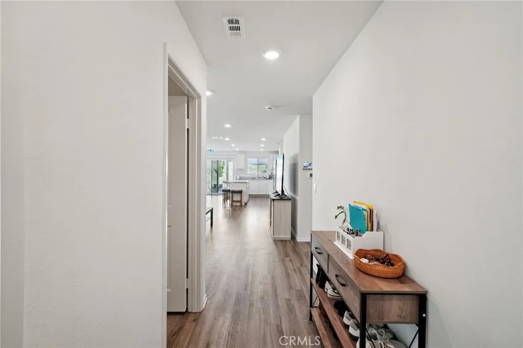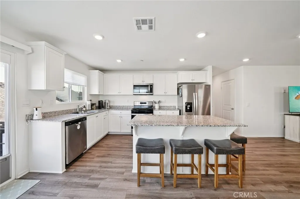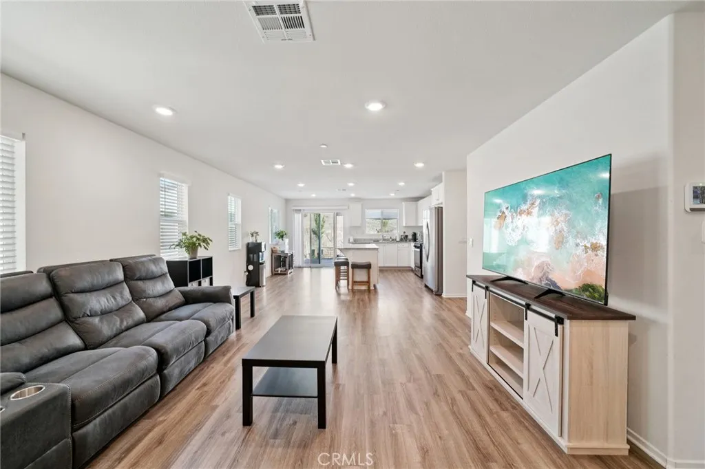 Located in the desirable Skylar Pointe community of Moreno Valley, this thoughtfully designed single-story residence offers an open-concept layout ideal for both everyday living and entertaining. The kitchen overlooks the spacious great room and features a center island with barstool seating and stainless steel appliances, creating a seamless flow for gatherings with family and friends. Generously sized bedrooms and bathrooms are complemented by modern finishes, including a primary suite with an ensuite bath and walk-in shower. Sliding glass doors open to the backyard, where a concrete patio provides a welcoming space for outdoor relaxation or entertaining. Residents enjoy access to a community park, playground, and skate/bike park, along with the benefit of low HOA dues. A rarely available DR Horton home, this property presents a wonderful opportunity to make it your own.