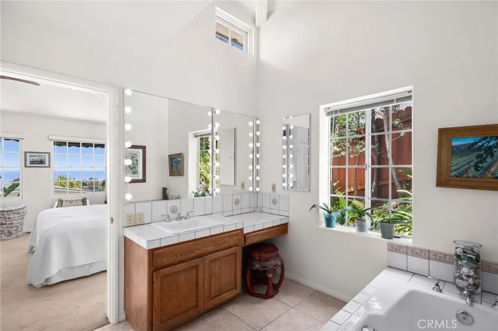 Experience refined coastal living in this ocean-view residence, ideally located in one of Laguna Beachs most desirable neighborhoods. Just a short stroll from acclaimed restaurants, art galleries, world-renowned beaches, and the vibrant heart of Laguna Village, this timeless home offers the ultimate blend of charm, lifestyle, and convenience. The property beautifully combines classic architectural character with modern comforts. Offering four bedrooms and three-and-a-half bathrooms, the flexible floor plan includes a separate entrance to the lower-level rooms, ideal for guests, extended family, or a creative studio space. A main-level bedroom allows for single-level living and connects to an additional room that can serve as a den, media room, or family room, with access to a spacious finished storage area. At the heart of the home, a sunlit family kitchen with ample storage opens to a generous ocean-view deckperfect for al fresco dining, garden views, and breathtaking sunsets over Catalina Island. A flat grassy yard and mature landscaping create a peaceful, private outdoor retreat. The primary suite is a tranquil sanctuary, featuring sweeping ocean views, natural light throughout, vaulted ceilings, and an oversized skylight that fills the space with sunshine by day and starlight by night. The en-suite bath offers garden views, a soaking tub, and a separate shower for a spa-like experience. The homes prime location makes it easy to leave the car behind and explore magnificent beaches, scenic parks, and the celebrated restaurants, cafes, galleries, and boutiques that make La