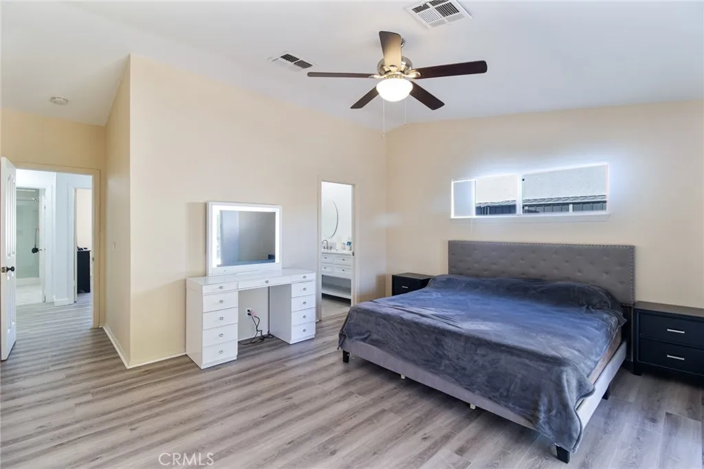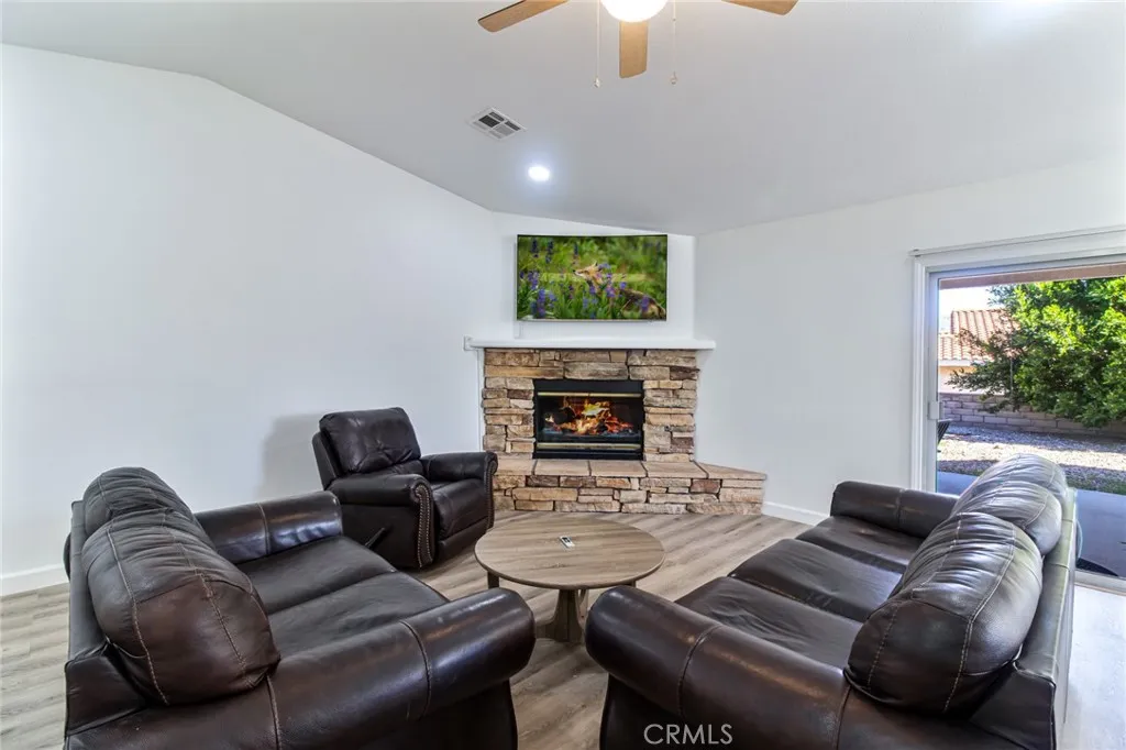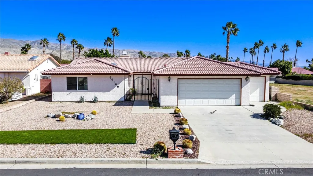 This amazing home is recently renovated and upgraded with an open floor plan with vaulted ceilings and spacious living room that flows into the kitchen/dining area. Updated Kitchen Equipped with upgraded appliances including electric range and dishwasher and a refrigerator. Gas fireplace in living area. Large primary bedroom with upgraded en-suite bathroom, walk-in closet, and backyard access. Guest Bedrooms Positioned separately for privacy. 2-car attached garage with extra space for a golf cart. Large covered back patio ideal for outdoor living. Located inside the wonderful Mission Lakes Country Club, a gated golf course community with amenities like: golf course access, lagoon-style pool and spas, tennis courts, fitness center, clubhouse with dining, and community lake views. Mediterranean-style architecture with stucco exterior and tile roof; well-maintained desert landscaping and an inviting gated entry. Mounted views of surrounding mountains from the property.